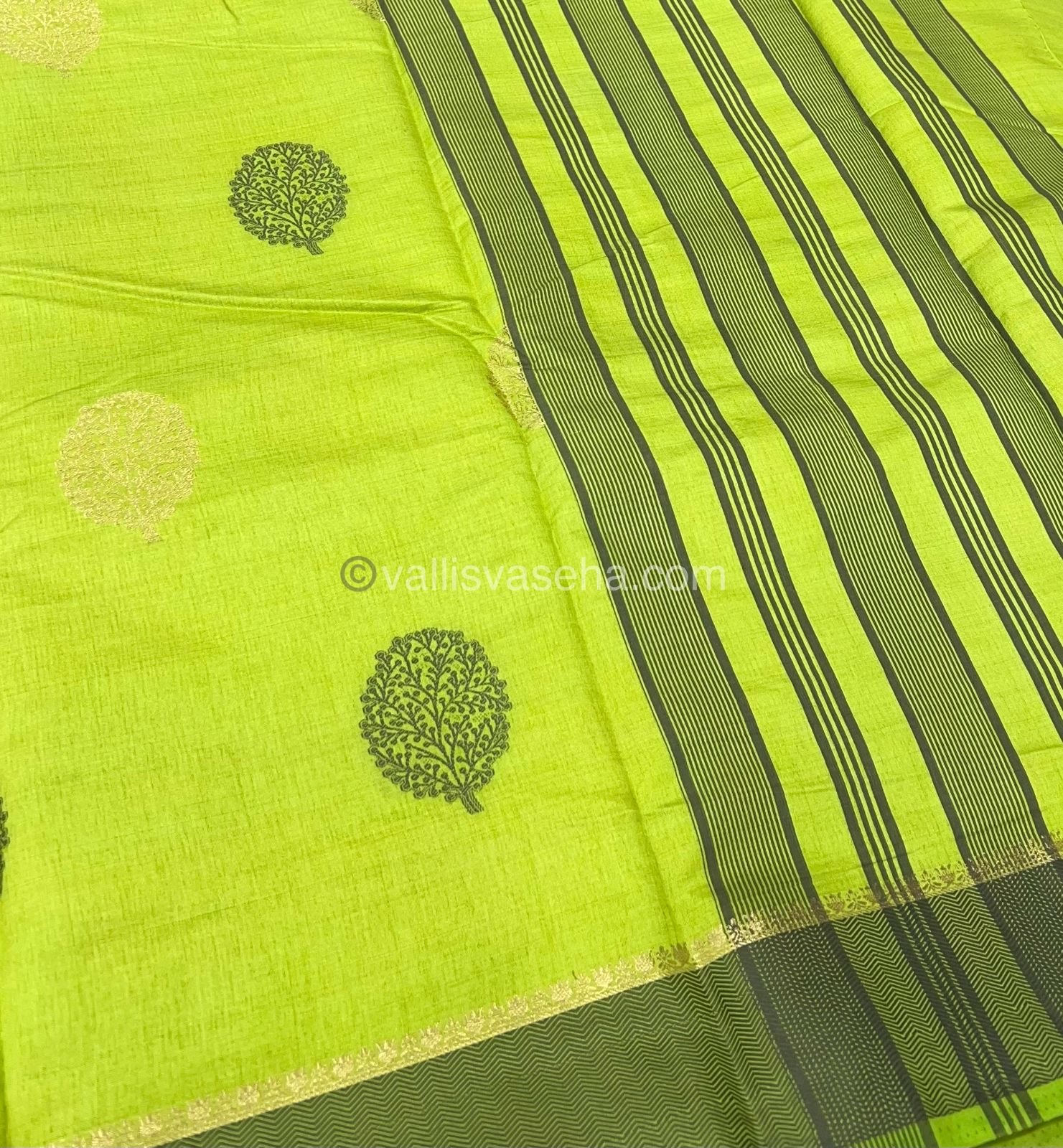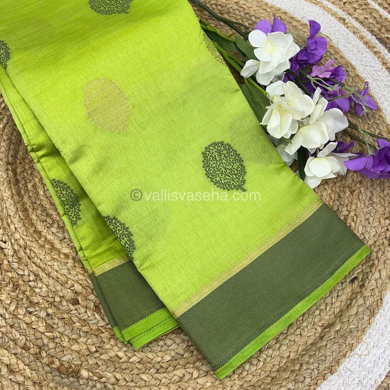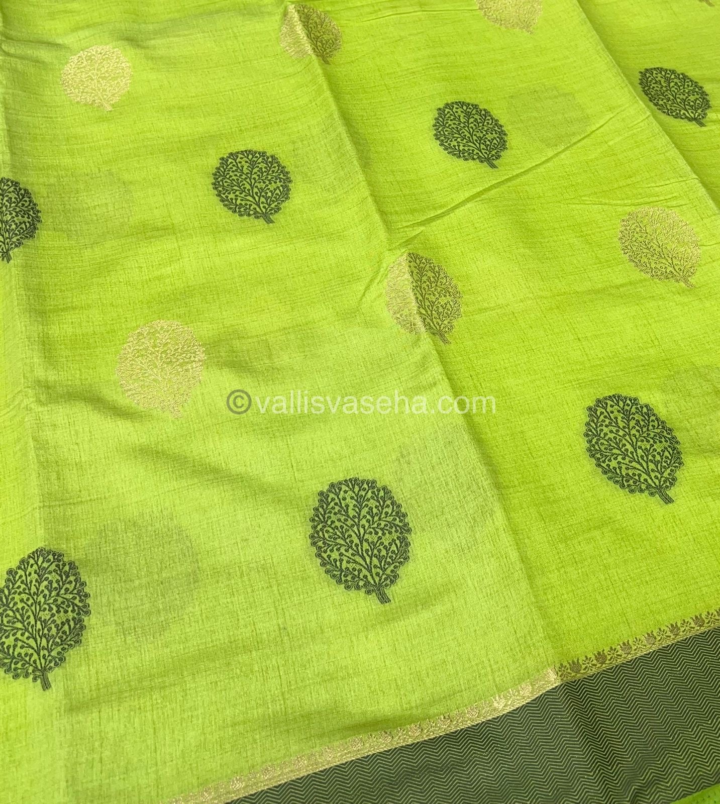 Semi Tussar Silk Saree - Lemon Green shade - VVSTS009