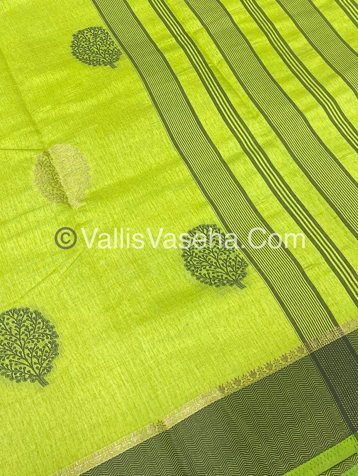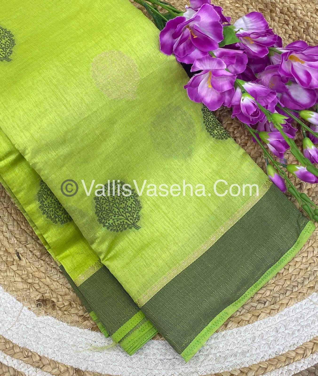Semi Tussar Silk Saree - Light Pista / Lemon Green shade - VVSTS009