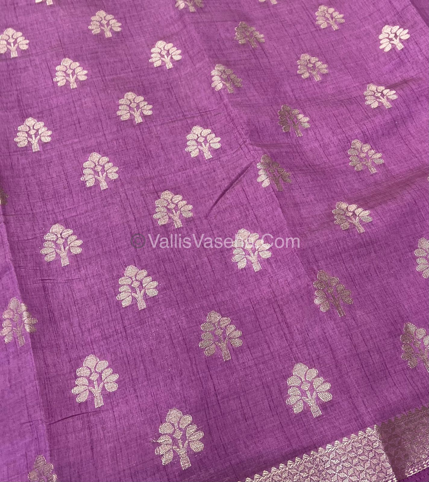 Semi Tussar Silk Saree with all over Butta design Weaving and Zari border and with Rich Zari Woven Pallu and running blouse.