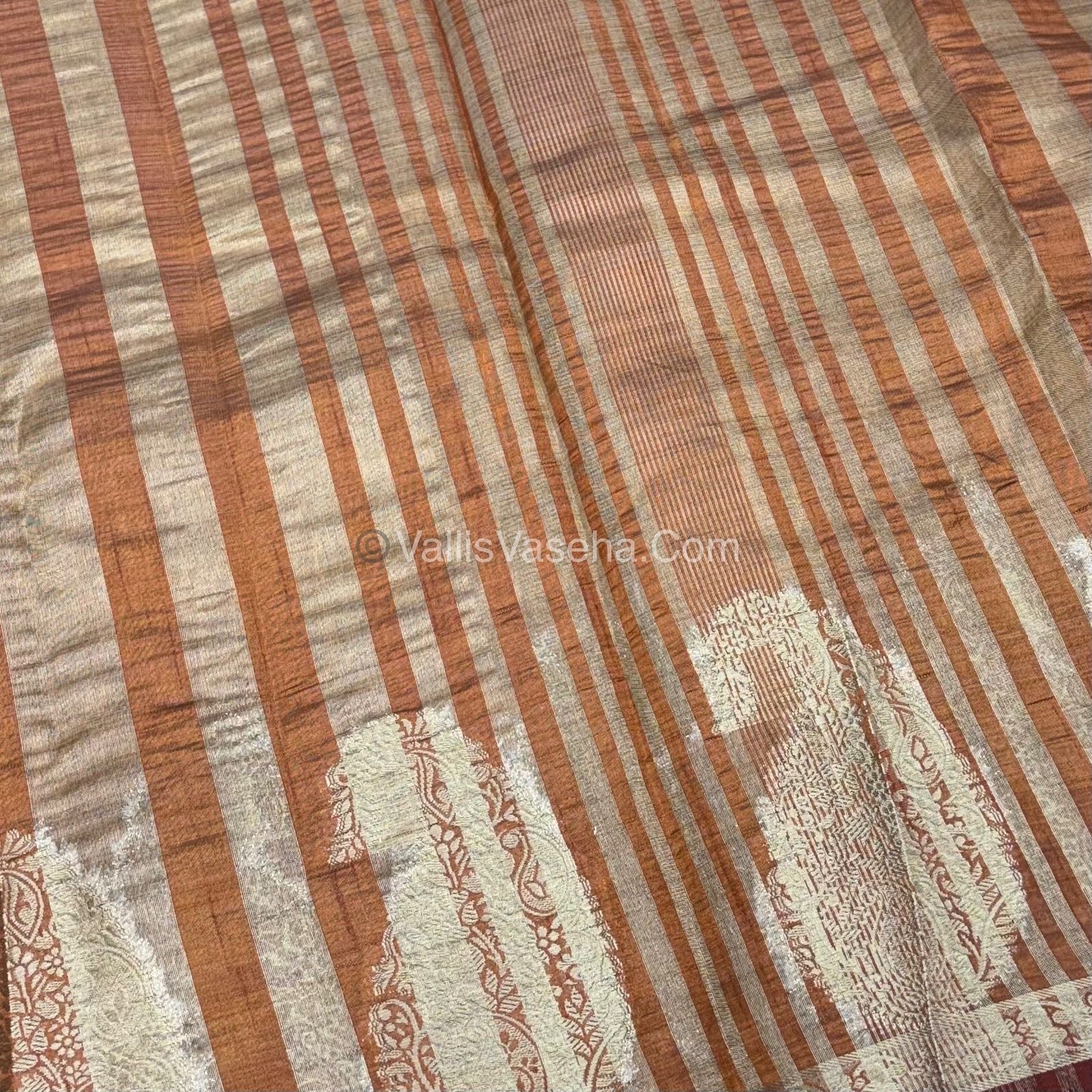 Semi Tussar Silk Saree / Semi Raw Silk Finish and all over border Mango design Weaving borders with Straips Pallu and running blouse.