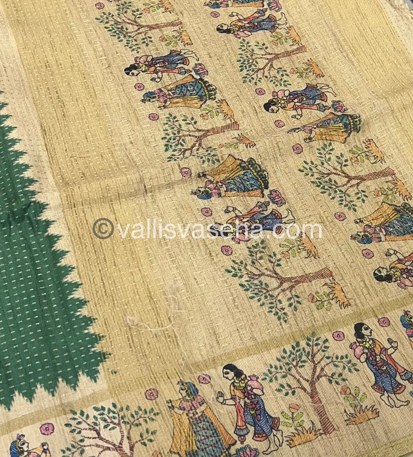 Semi Tussar Silk - Vairavoosi Design - Green & Cream Shade - VVSTS030
