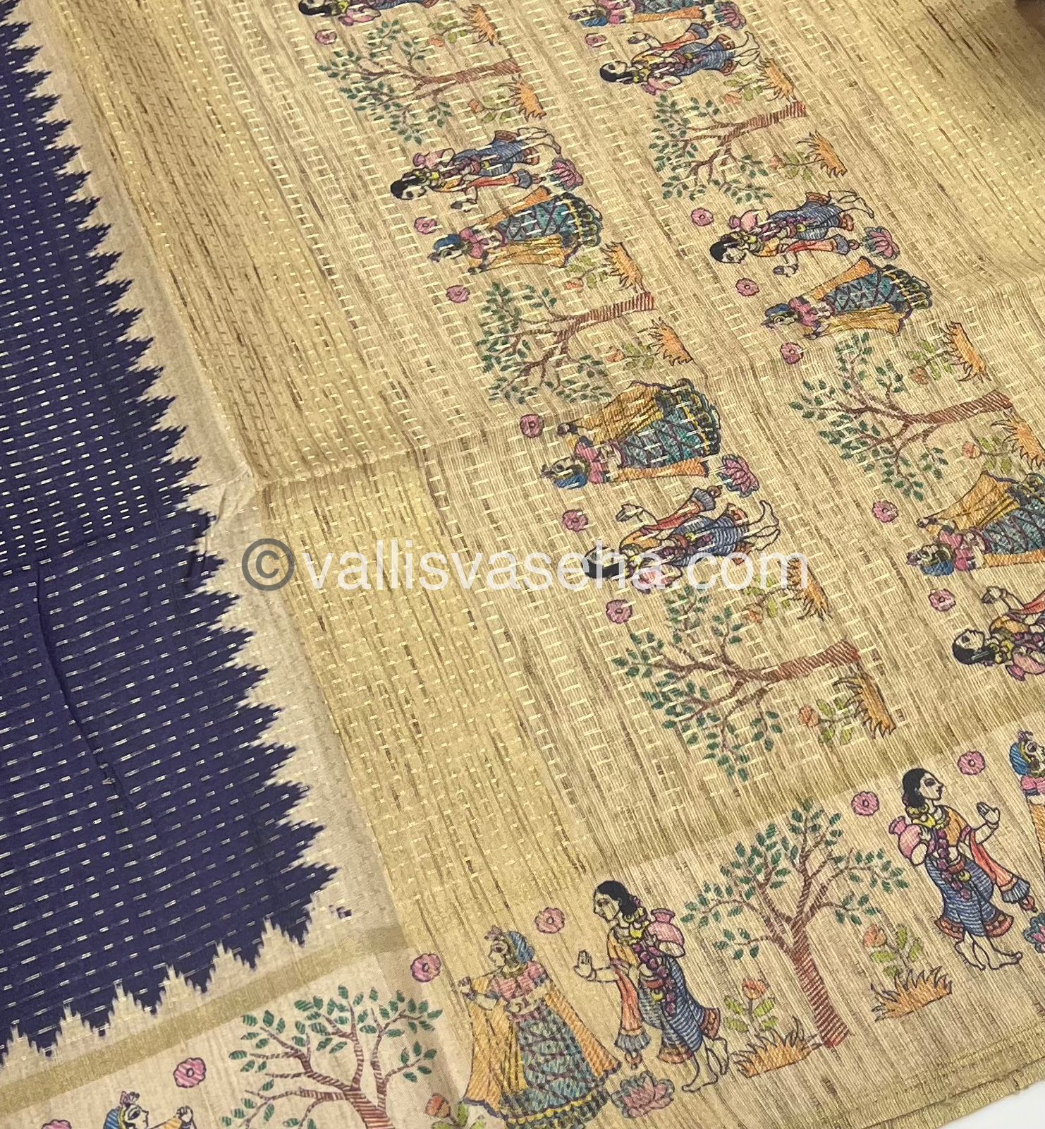 Semi Tussar Silk - Vairavoosi Design - Violetish Blue & Cream Shade - VVSTS030