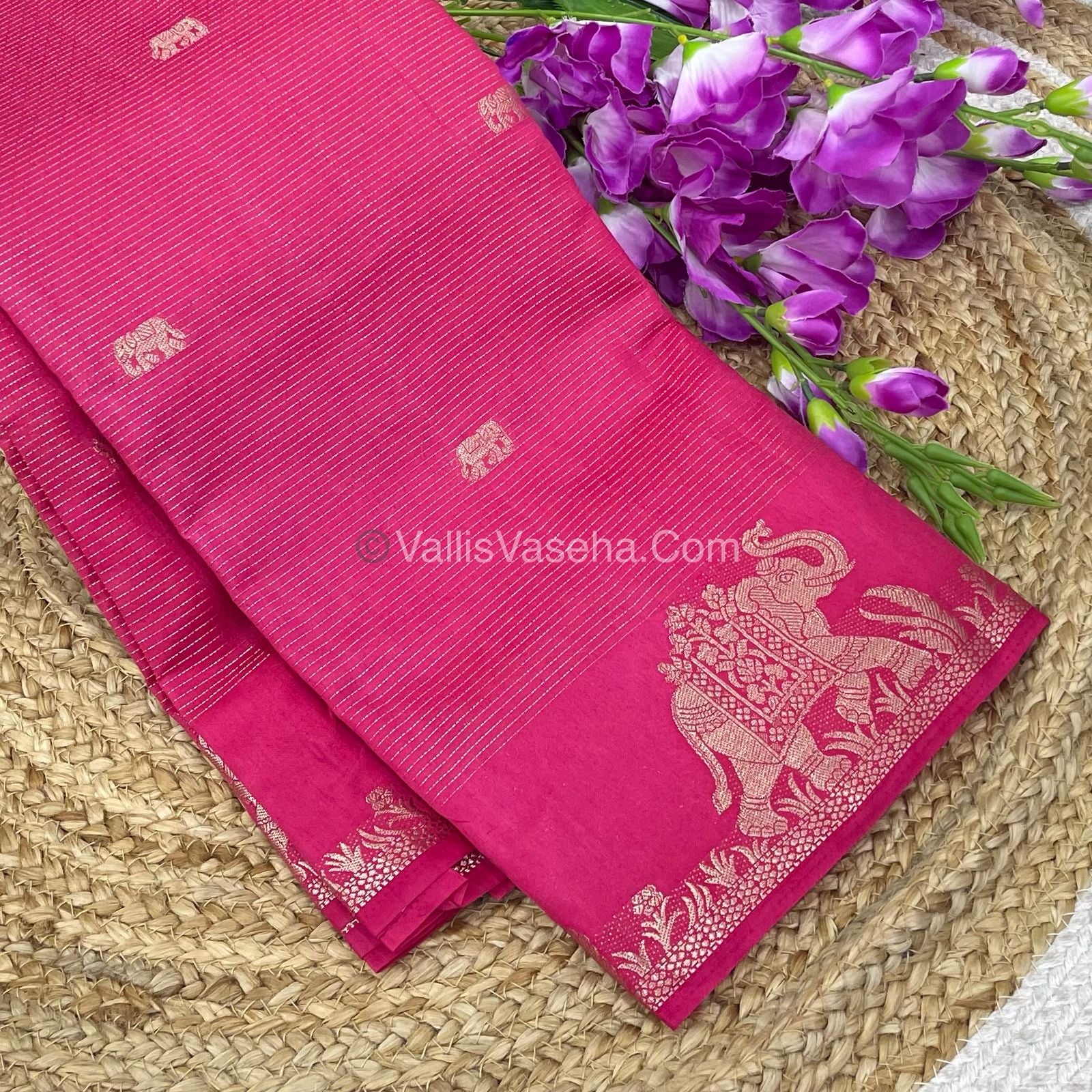 Semi Tussar Silk Saree / Semi Raw Silk Finish and all over Vairavoosi design with small elephant Butta design and elephant design Weaving borders with Straips Pallu and small butta blouse.