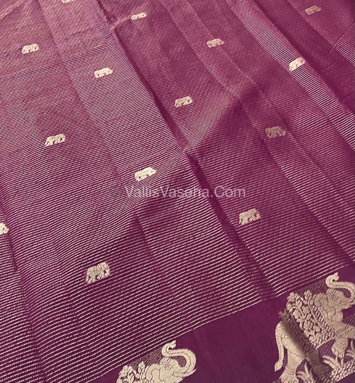Semi Tussar Silk - Vairavoosi & Elephant Design - Wine shade-VVSTS019