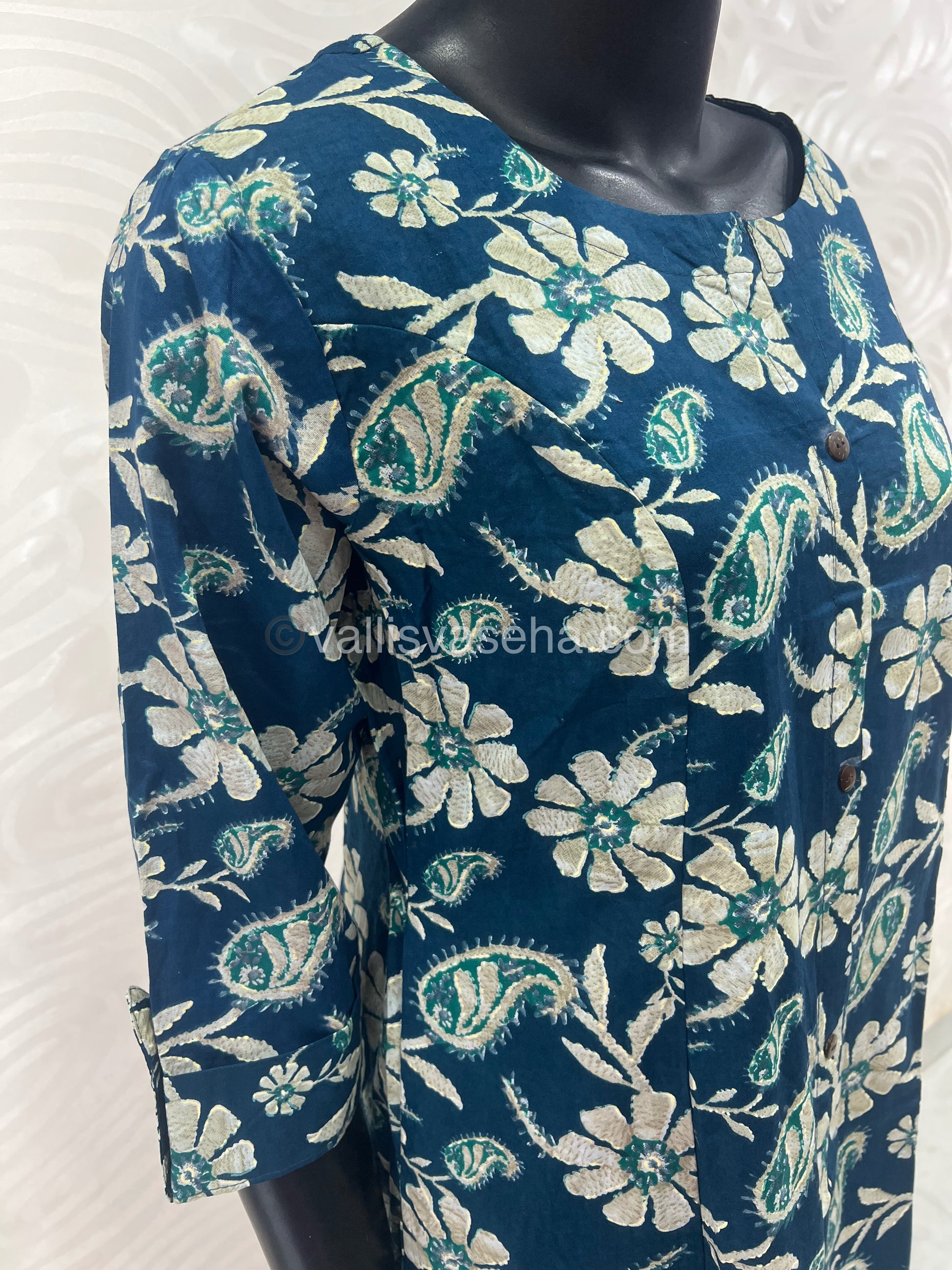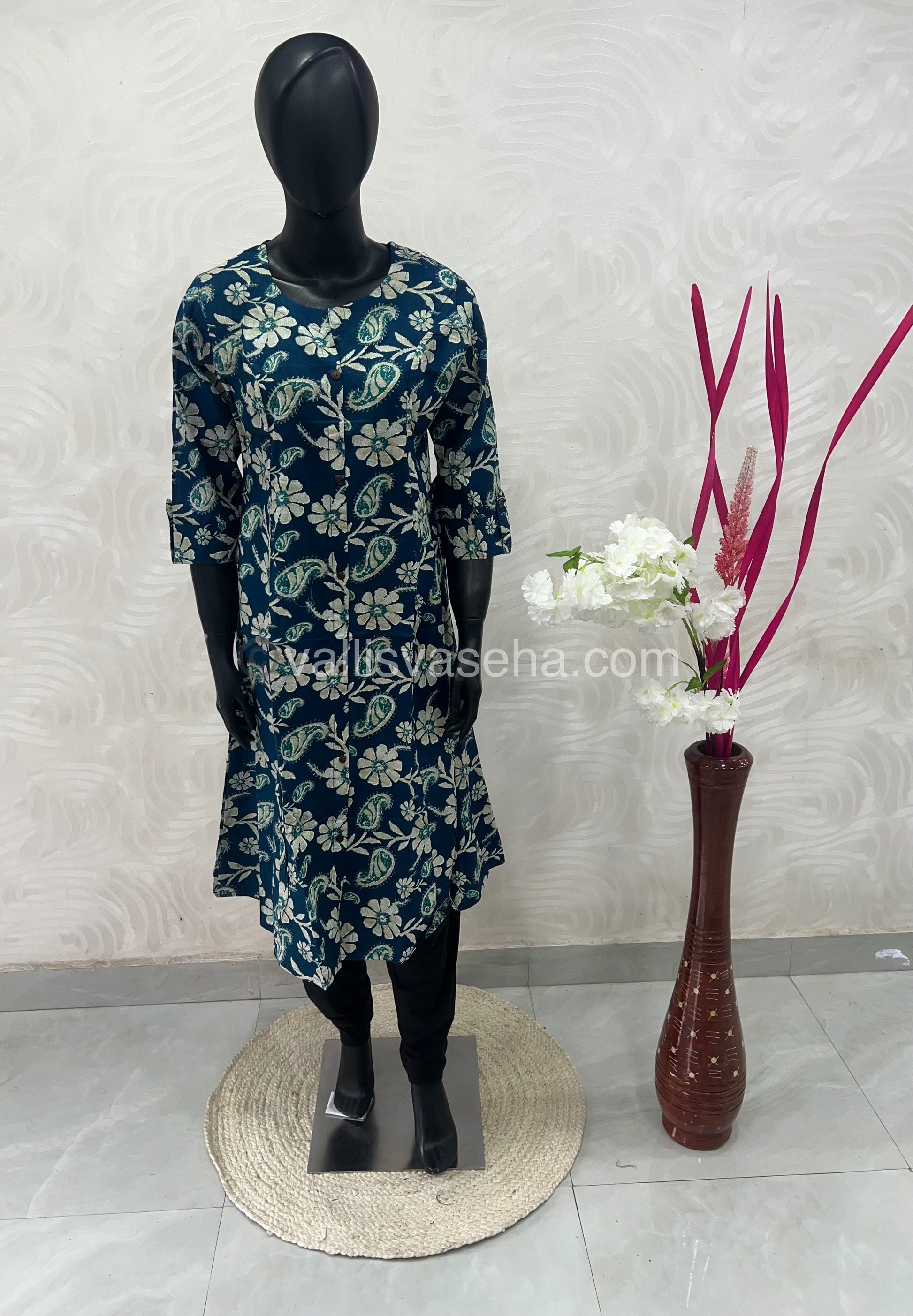 Slub Cotton - Printed Kurti - A - Line Cut - VVALK001