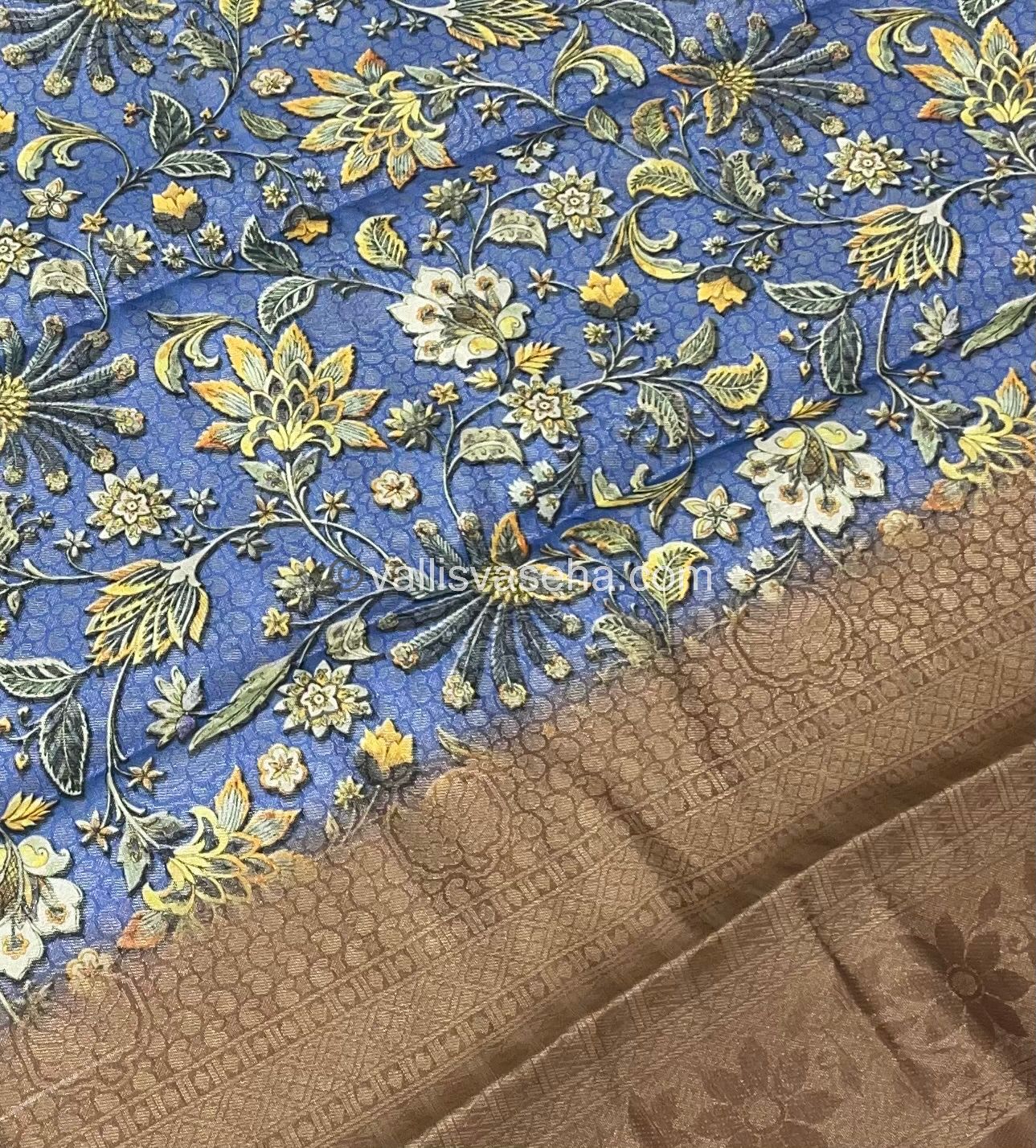 Softy Silk Saree With Digital Prints , Contrast Pallu And Contrast Blouse | Soft and Flowly Stuff Sarees.