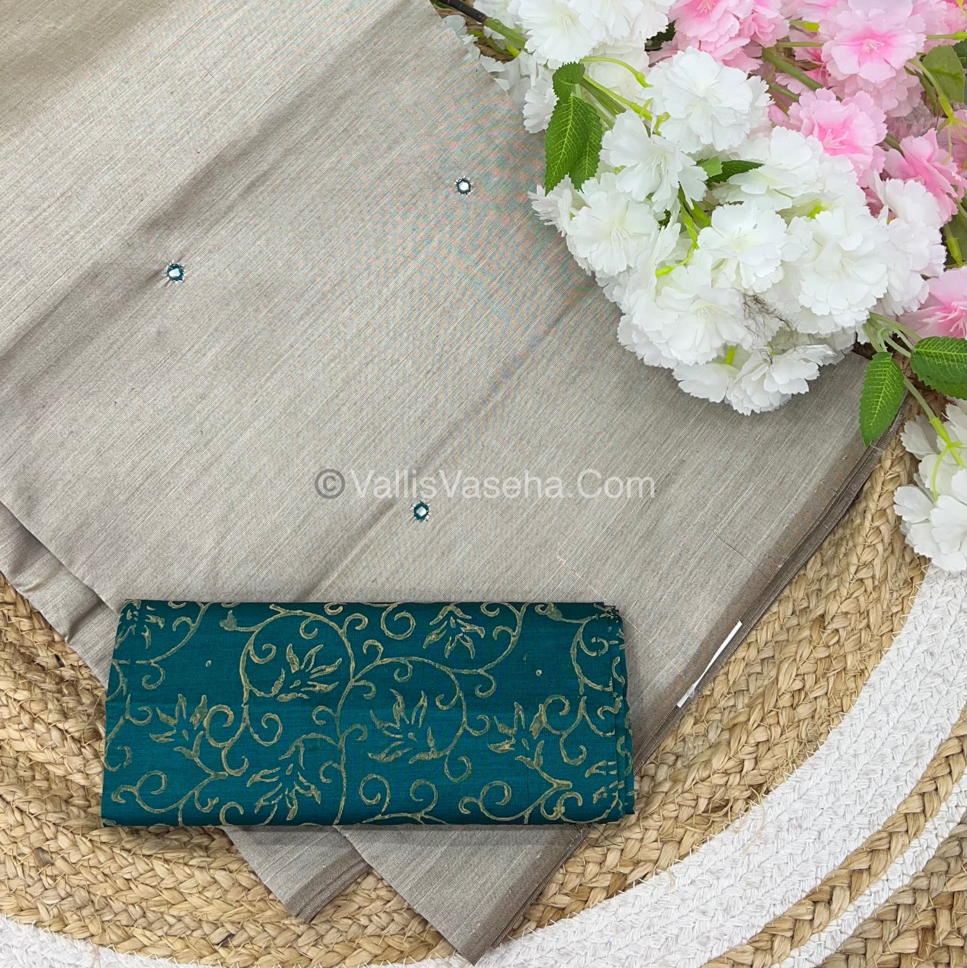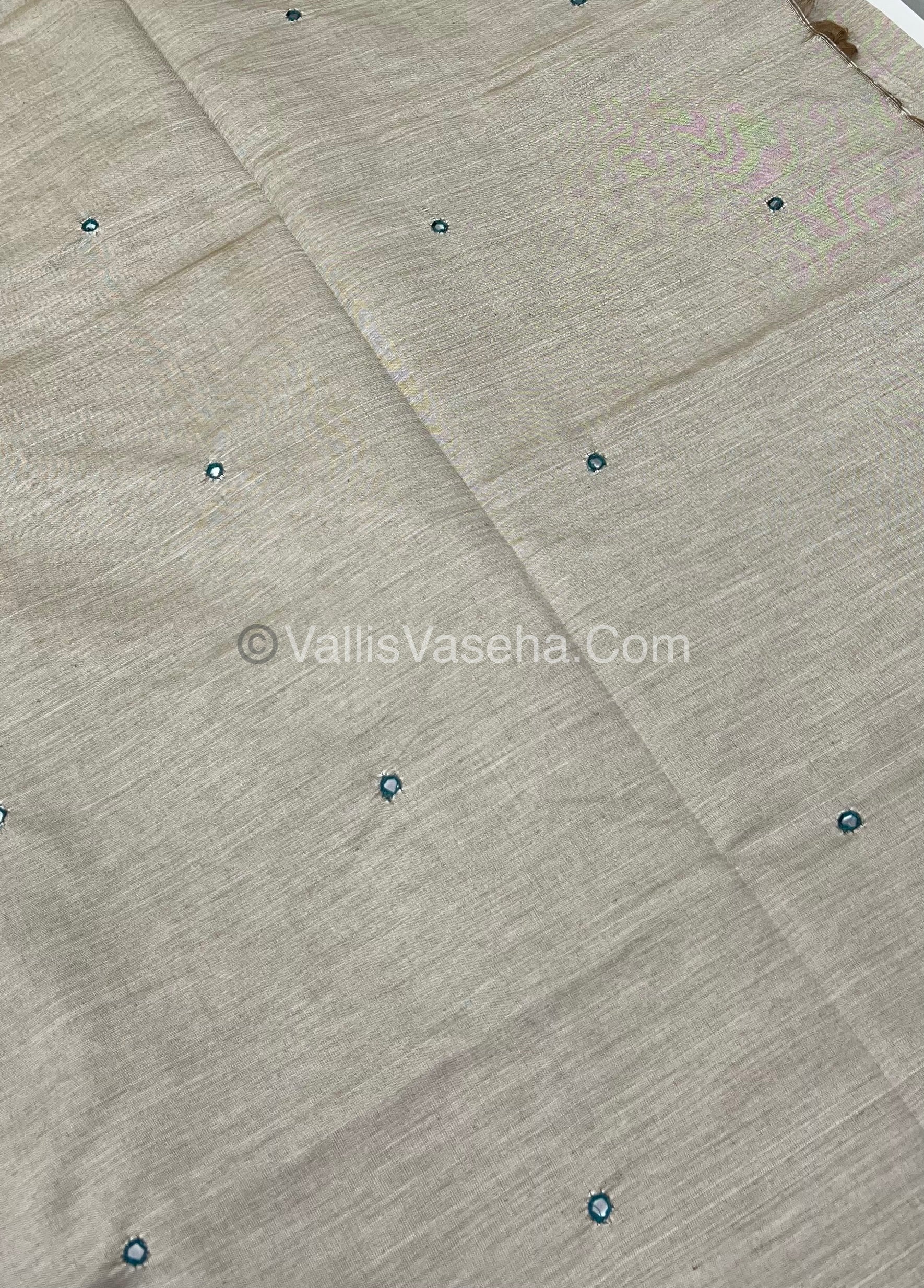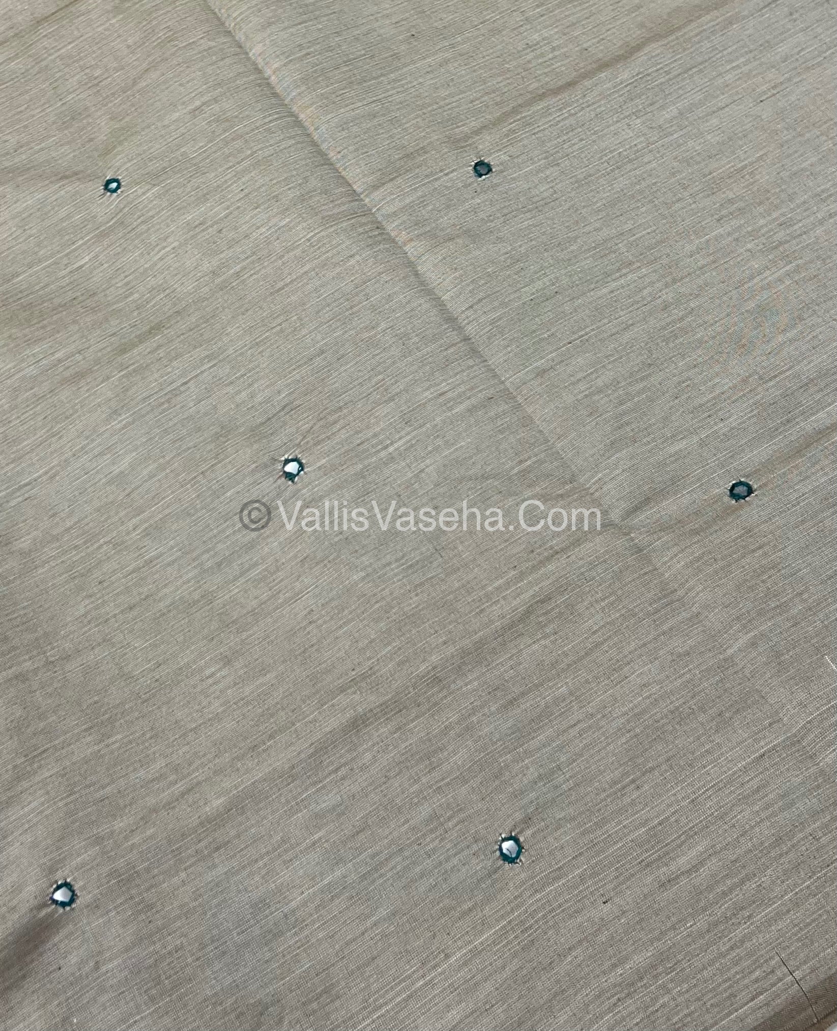 South Mixed Cotton - Mirror Work Embroidery - Creamish Grey With Green - VVPCM002