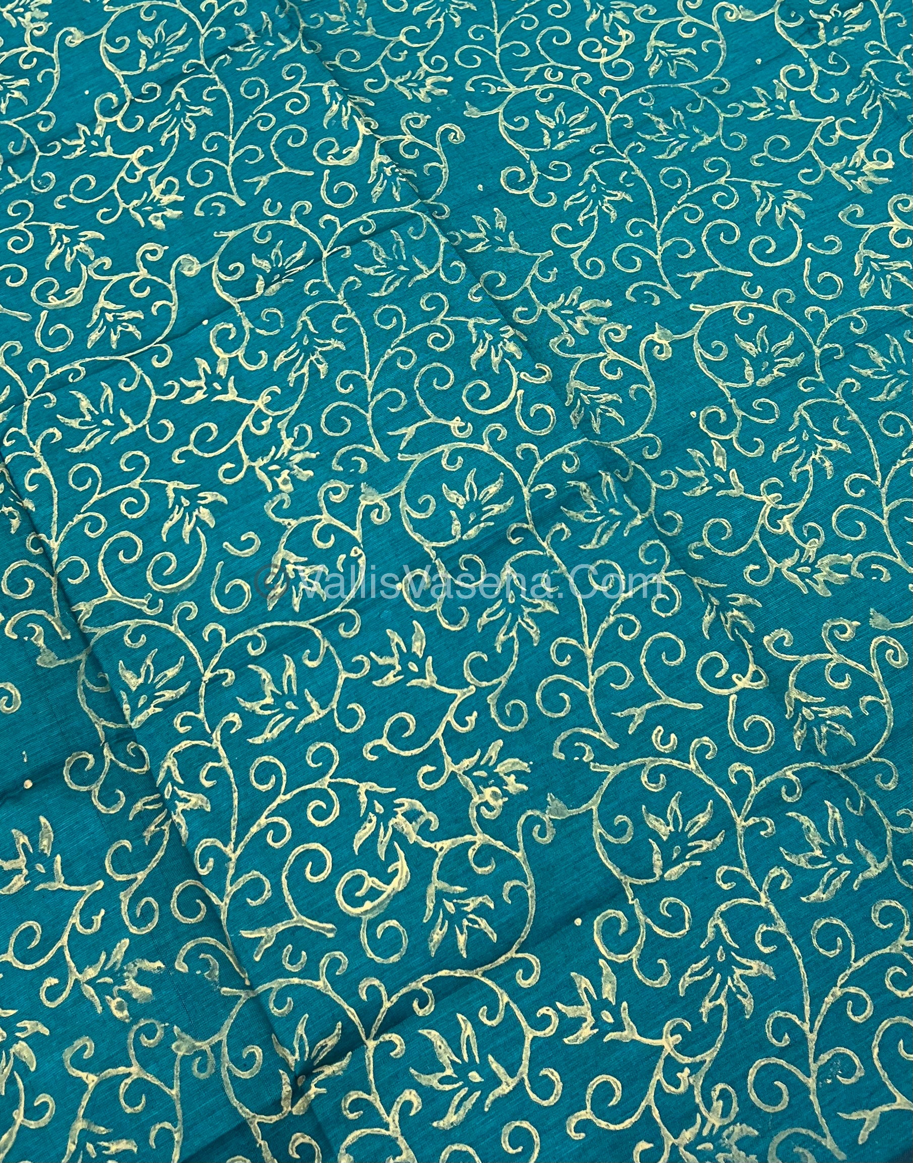 South Silk Mixed Cotton with all over mirror work embroidery with tassels and Separate Printed Blouse .
