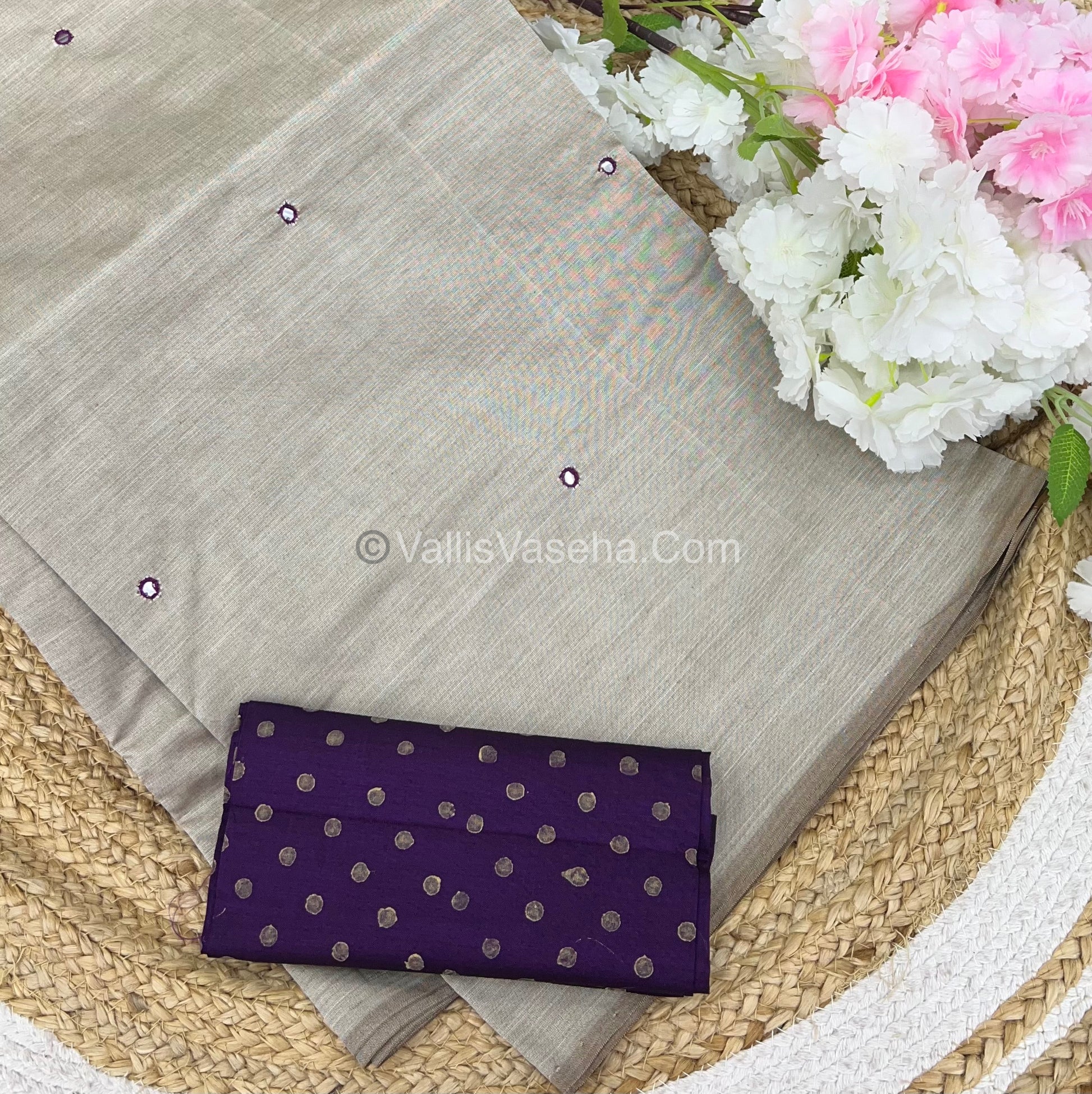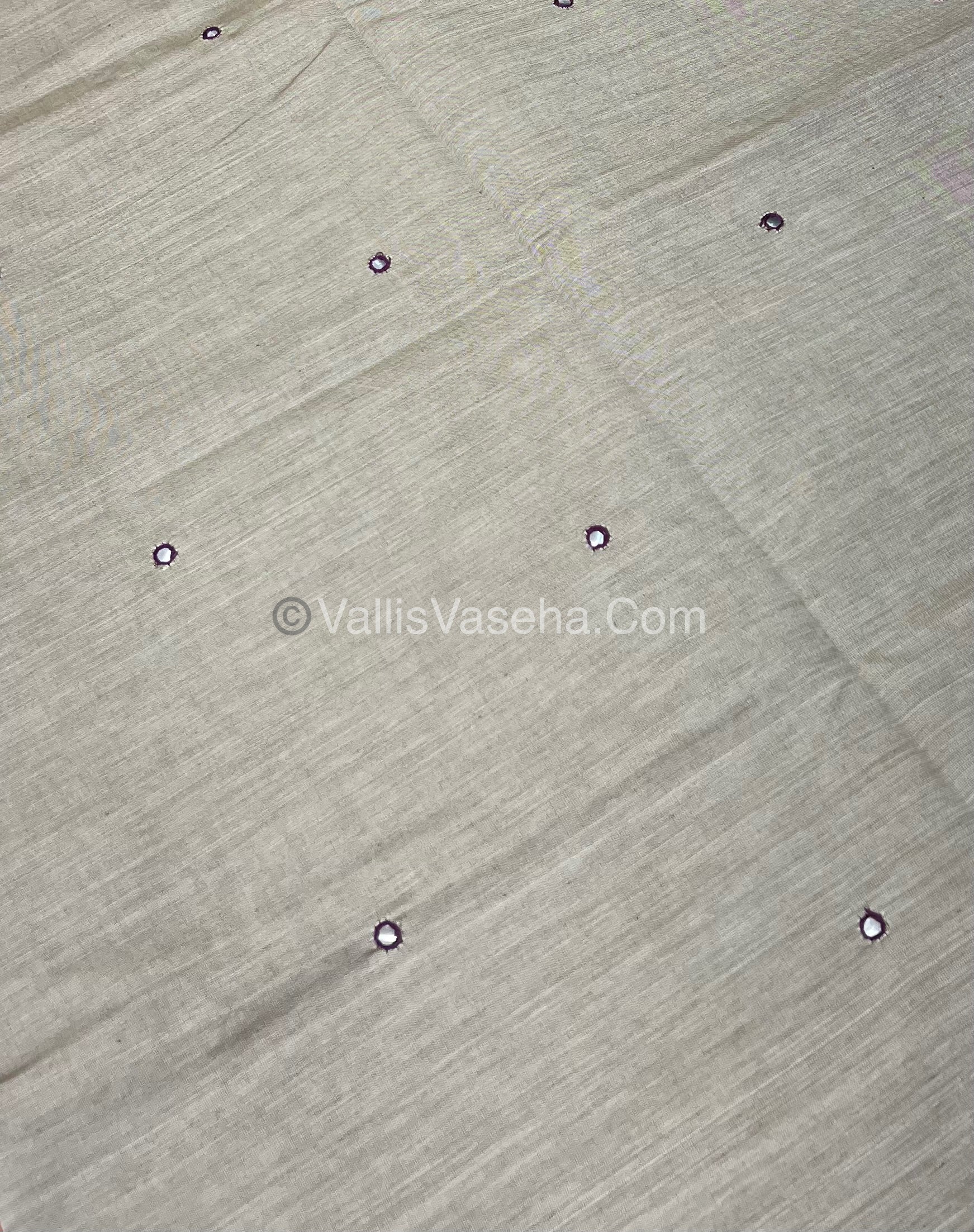 South Mixed Cotton - Mirror Work Embroidery - Cream with Purple - VVPCM002