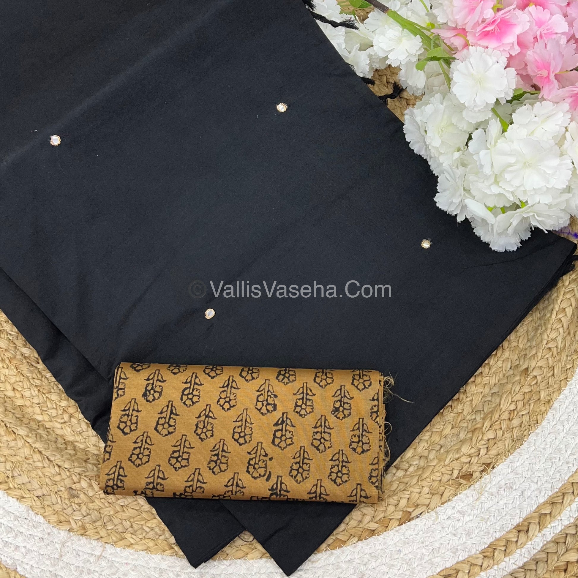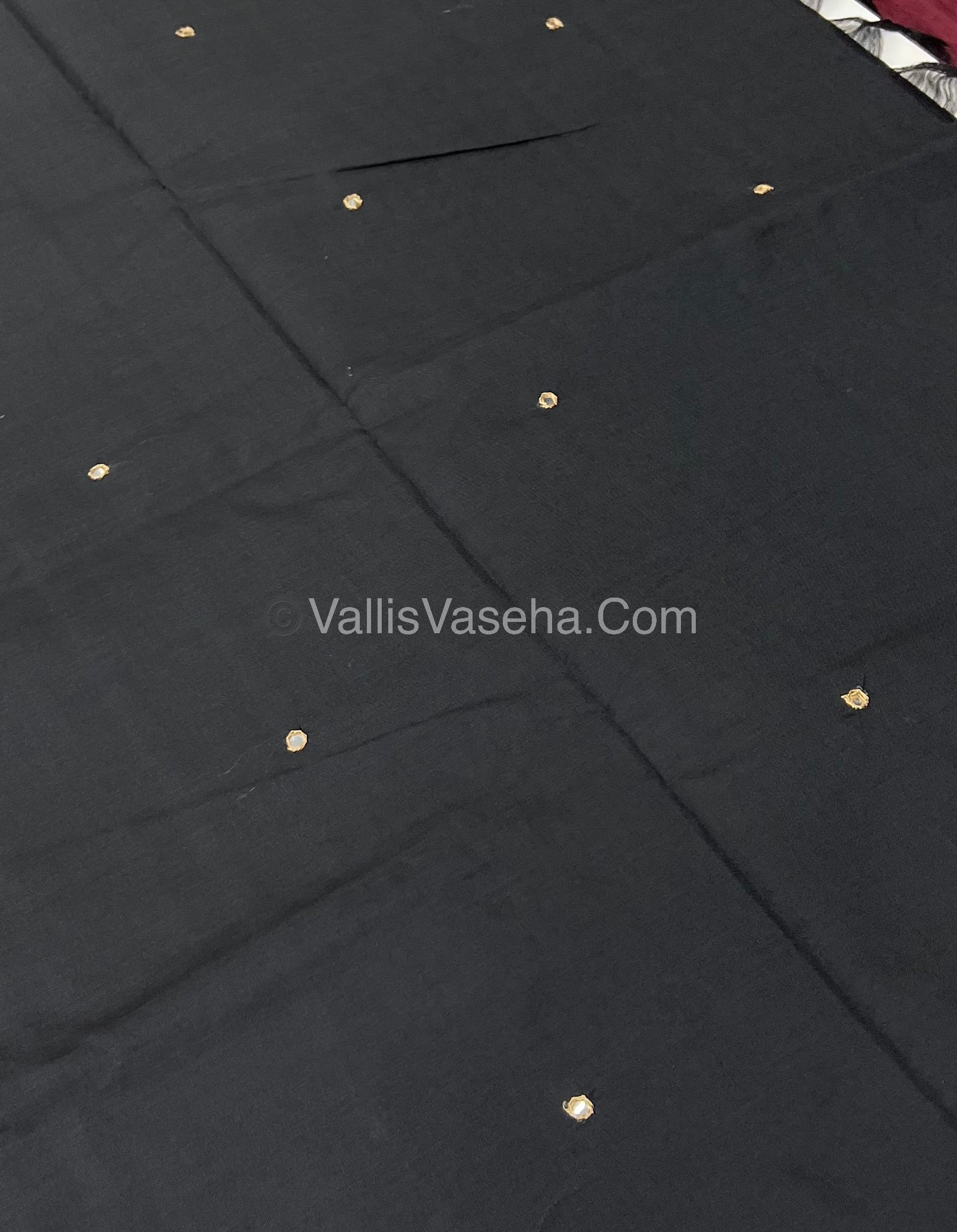 South Mixed Cotton - Mirror Work Embroidery - Black with Mustard- VVPCM002