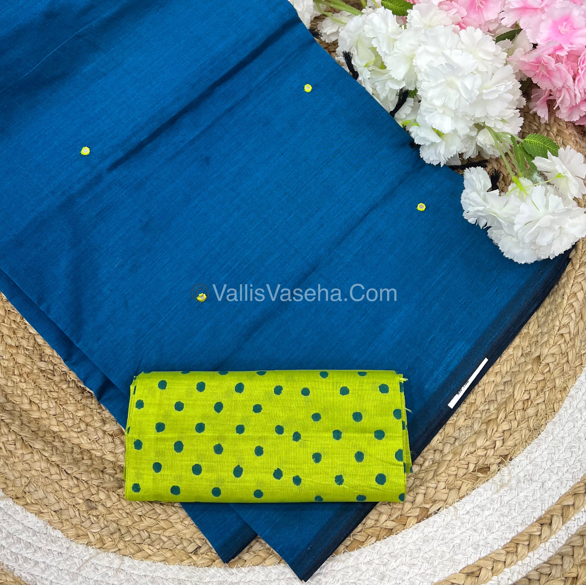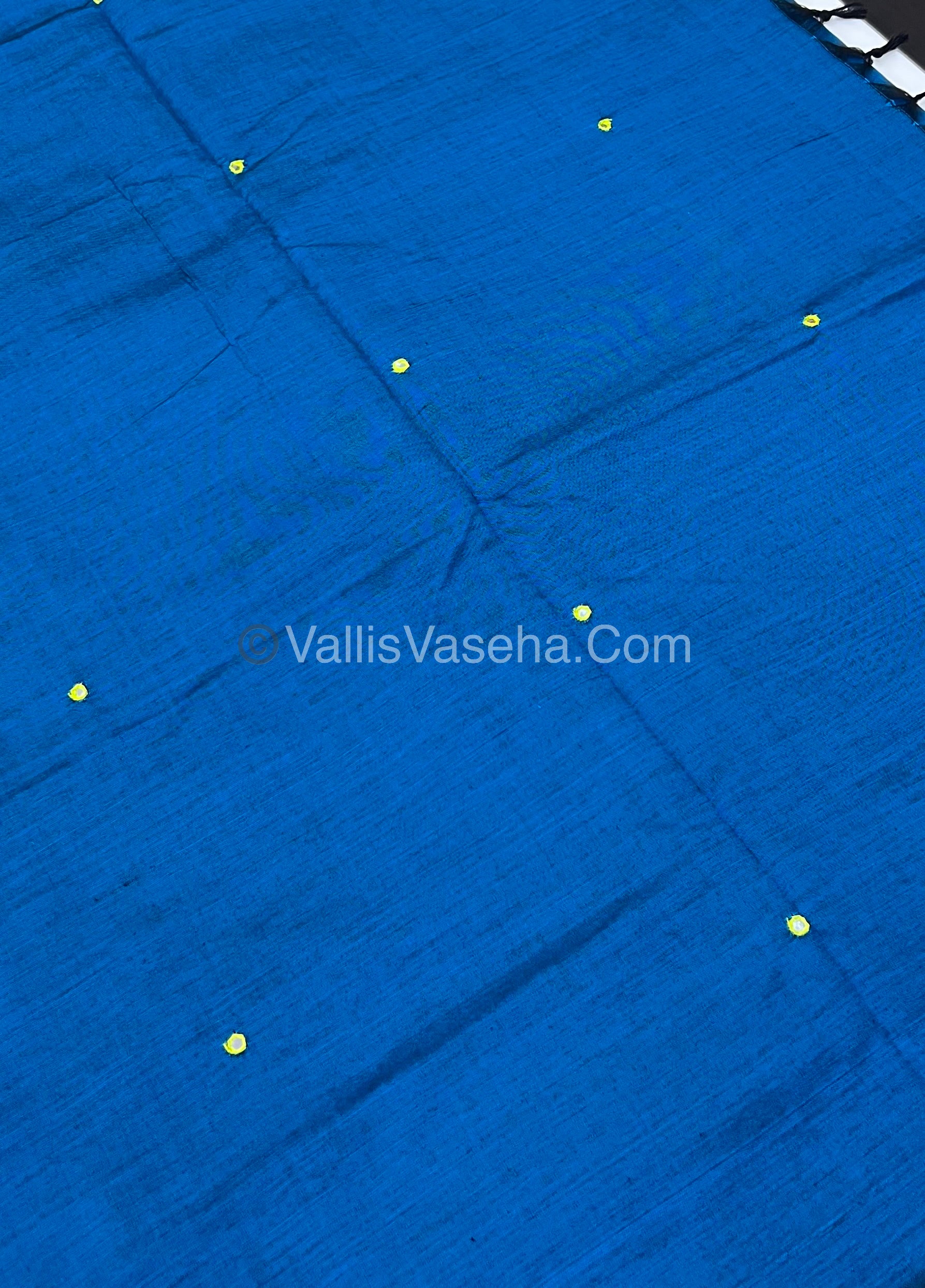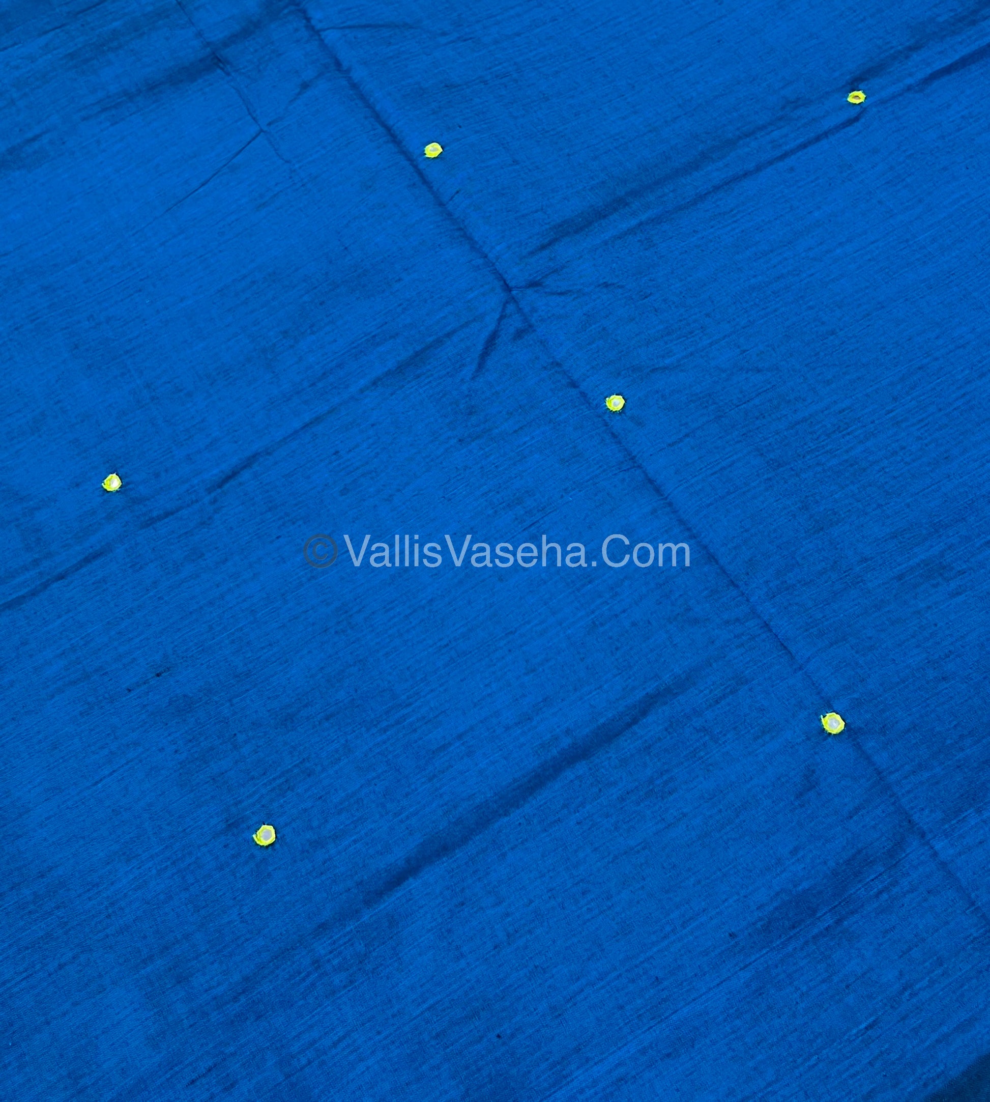 South Mixed Cotton - Mirror Work Embroidery - Blue with Lemon Green- VVPCM002