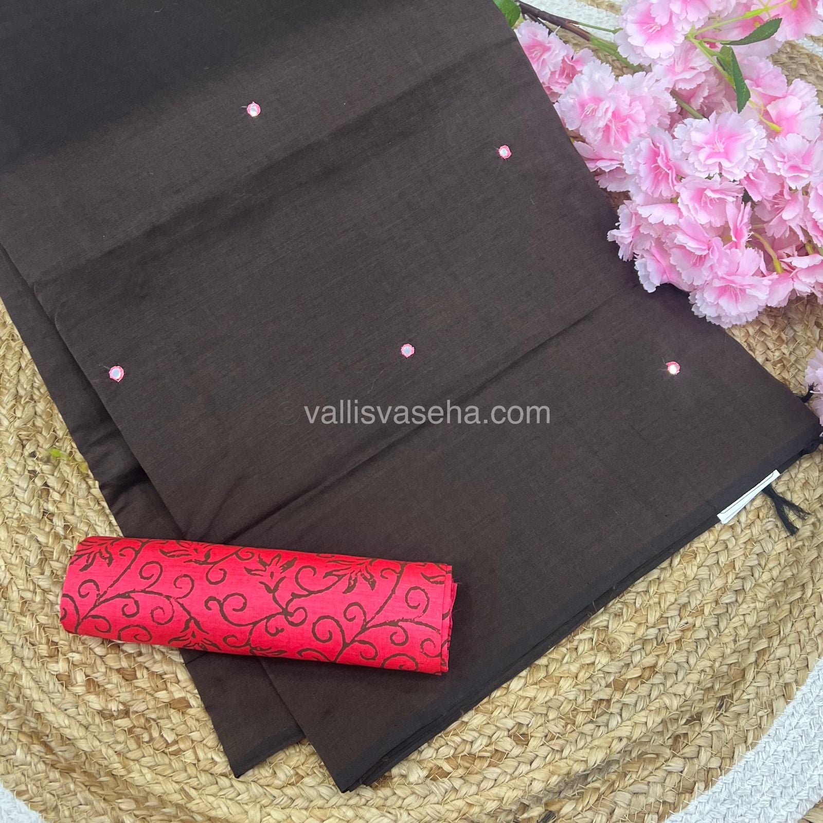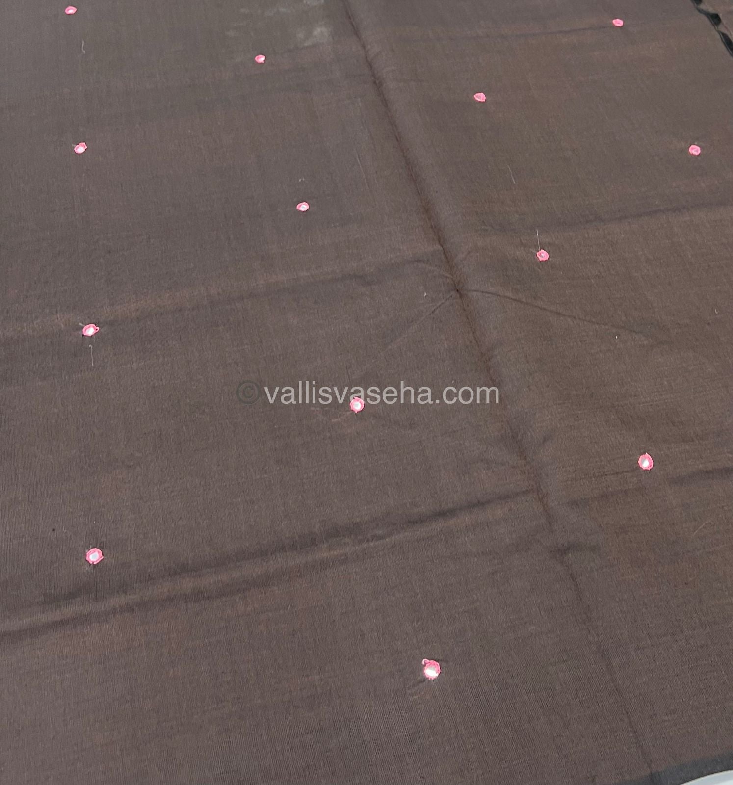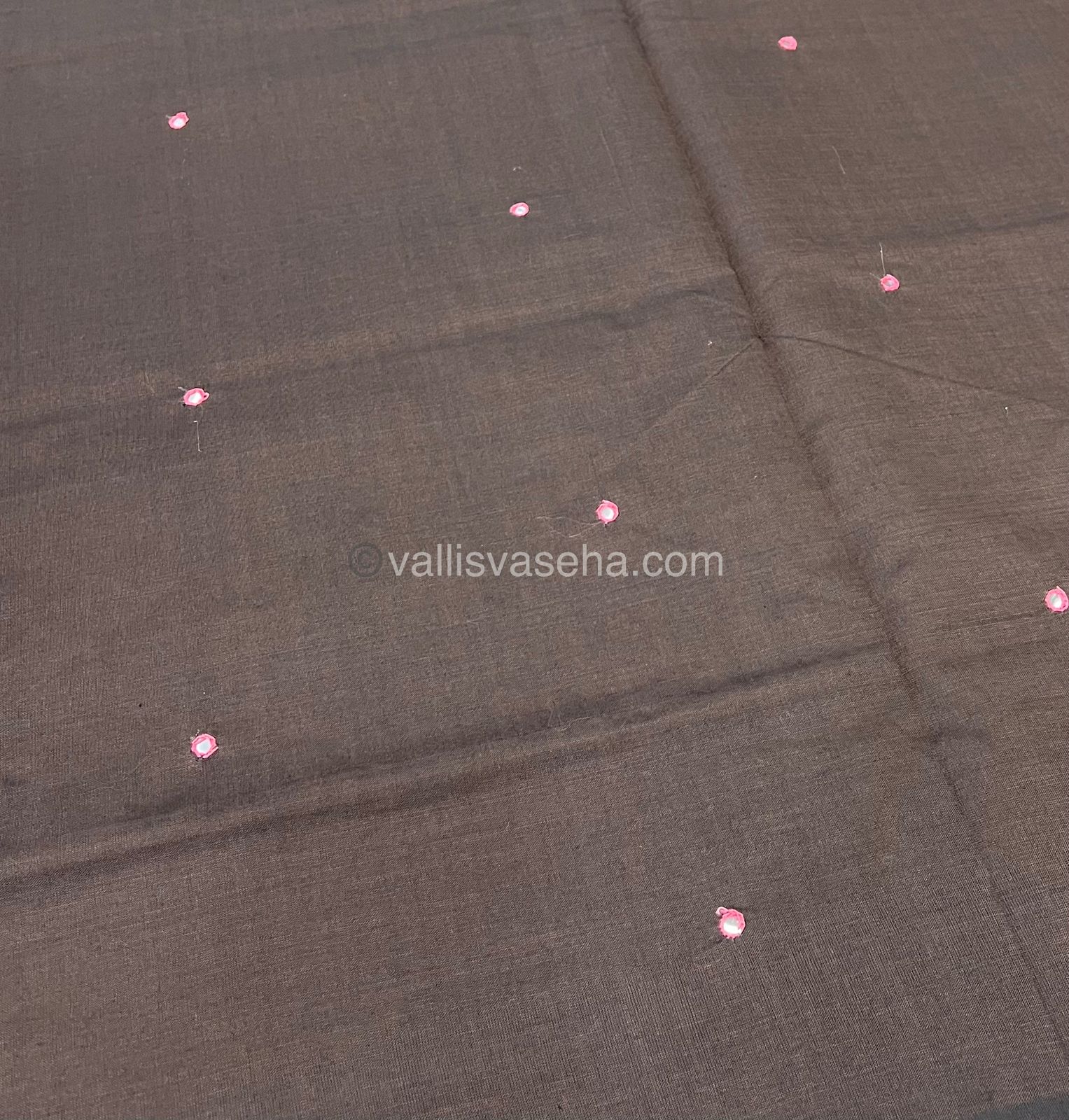South Mixed Cotton - Mirror Work Embroidery - Brown with Pink - VVPCM002