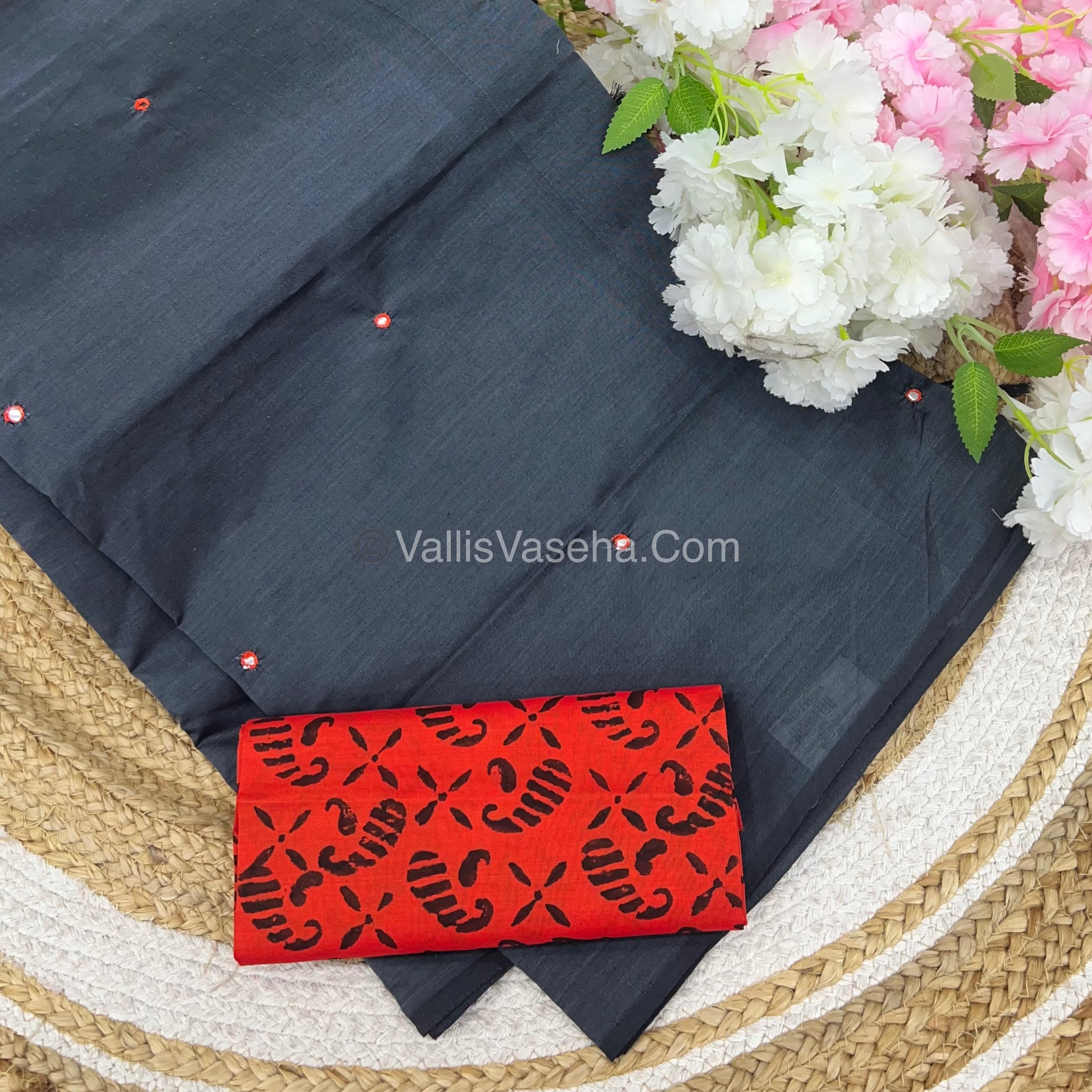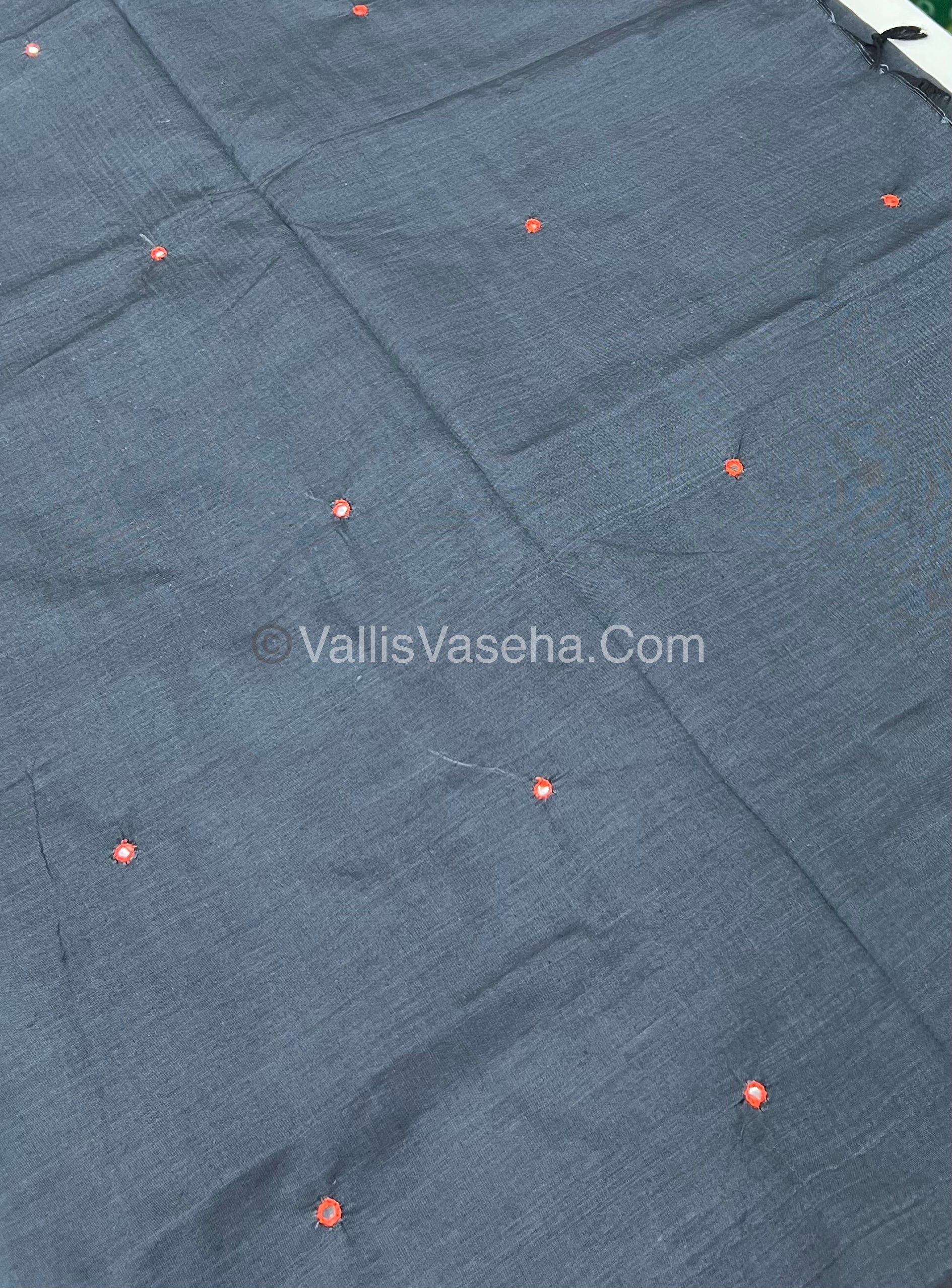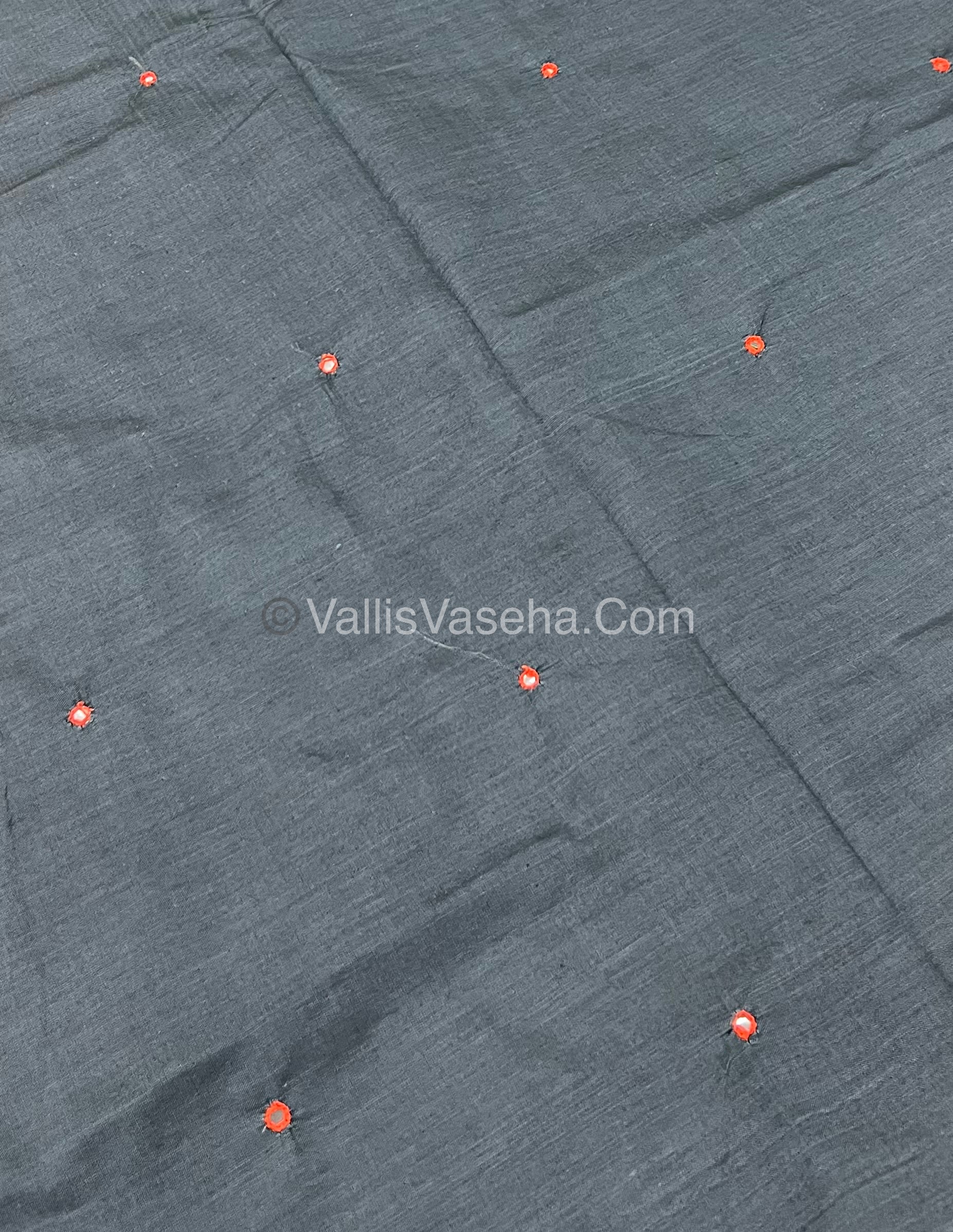 South Mixed Cotton - Mirror Work Embroidery - Grey With Orange - VVPCM002