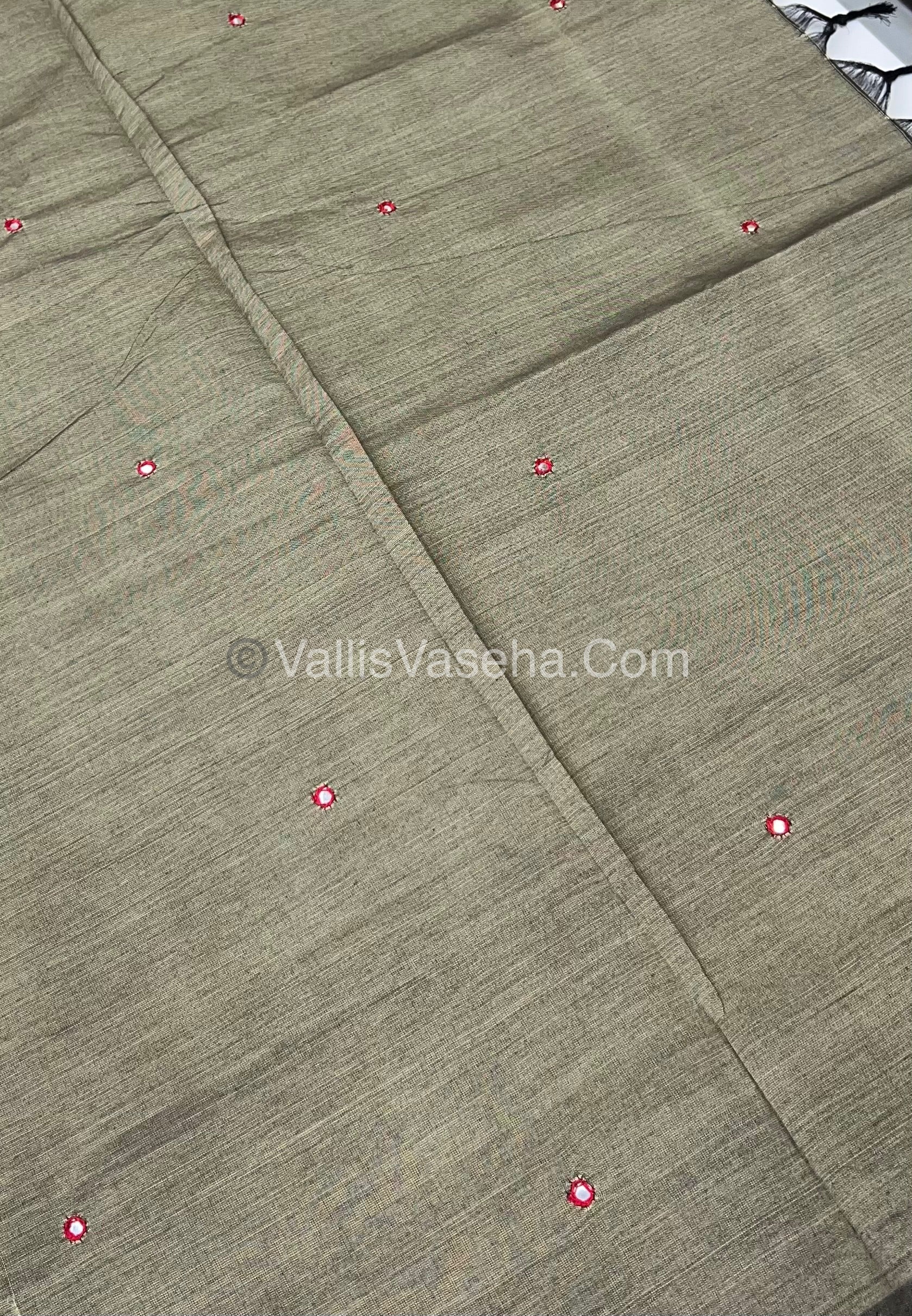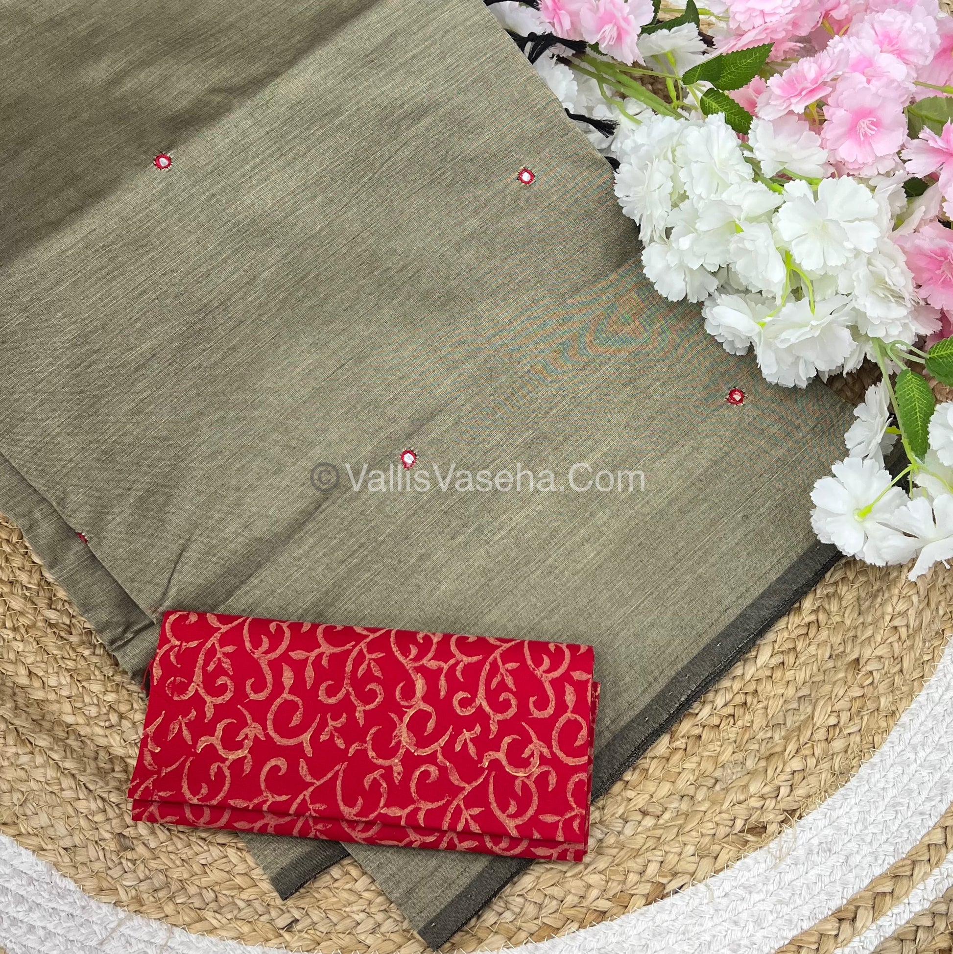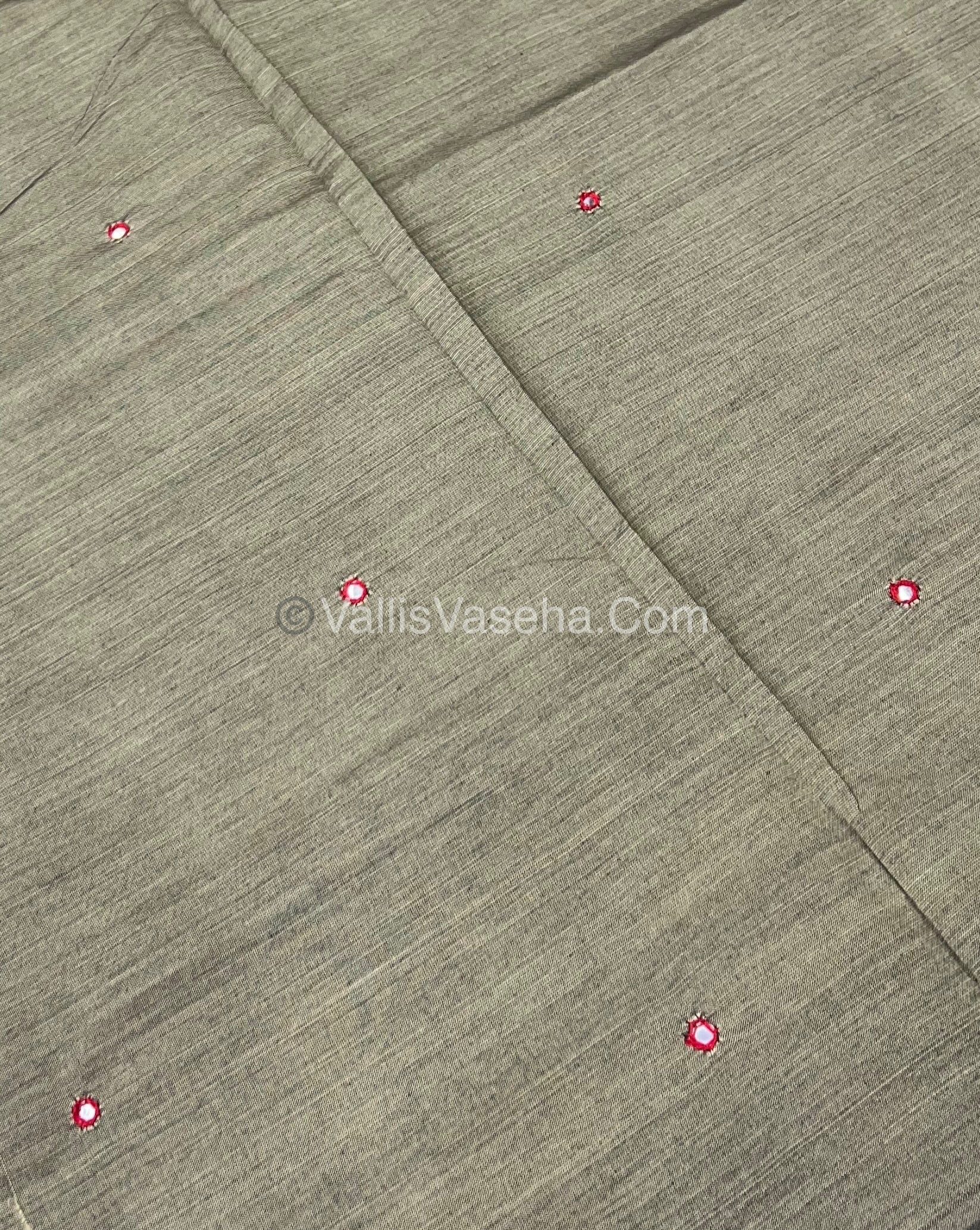 South Mixed Cotton - Mirror Work Embroidery - Grey ( Cement Colour )with Red - VVPCM002