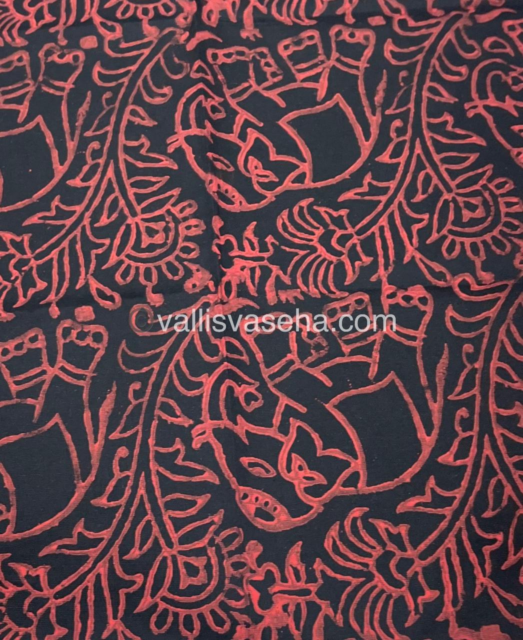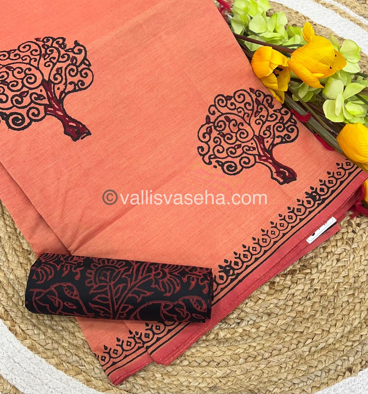 South Mixed Printed Cotton - Peachish Orange With Black - VVPCP003
