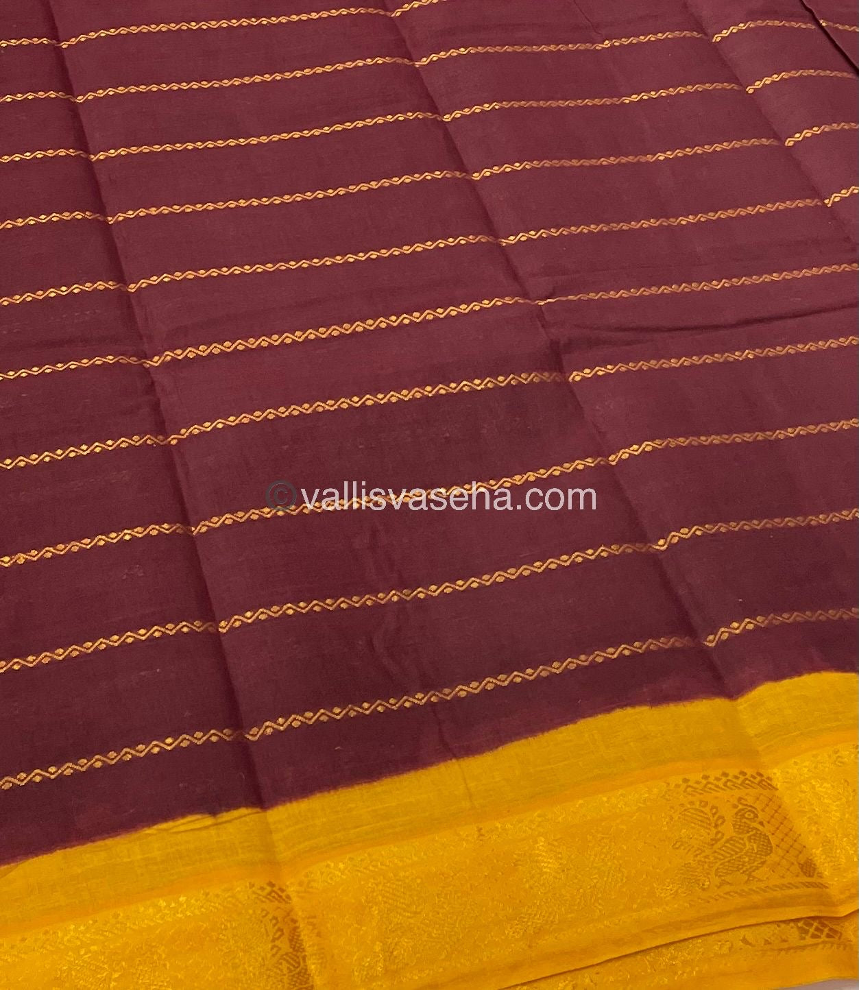 Sungudi Cotton Saree | Velthari Design - Brown with Yellow Shade - VVSCV001