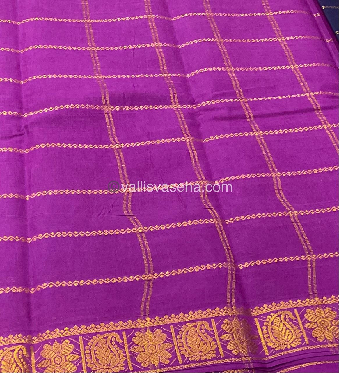 Sungudi Cotton Saree | Velthari Design - Navy Blue with Purple Shade - VVSCV001