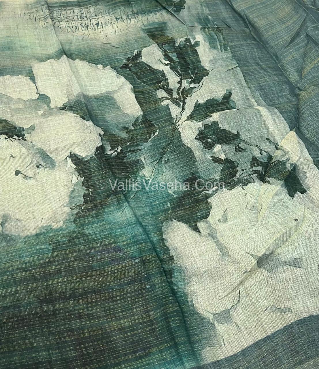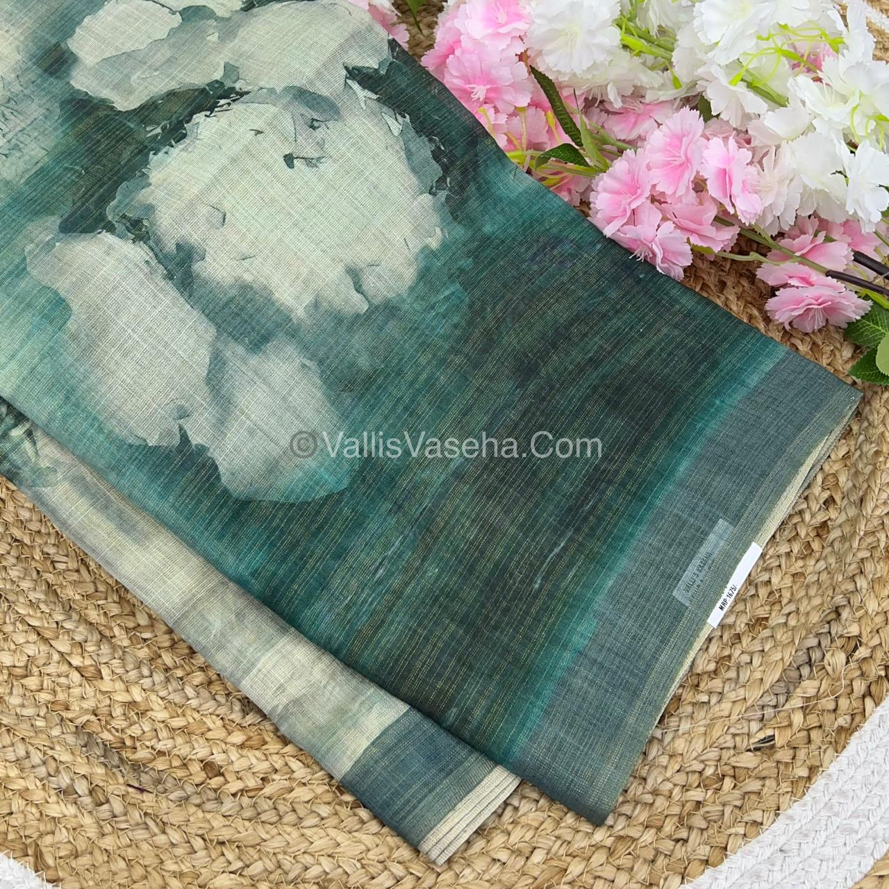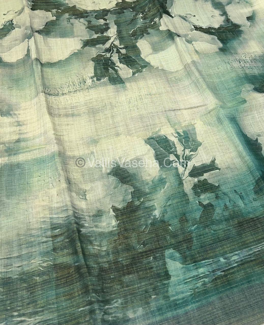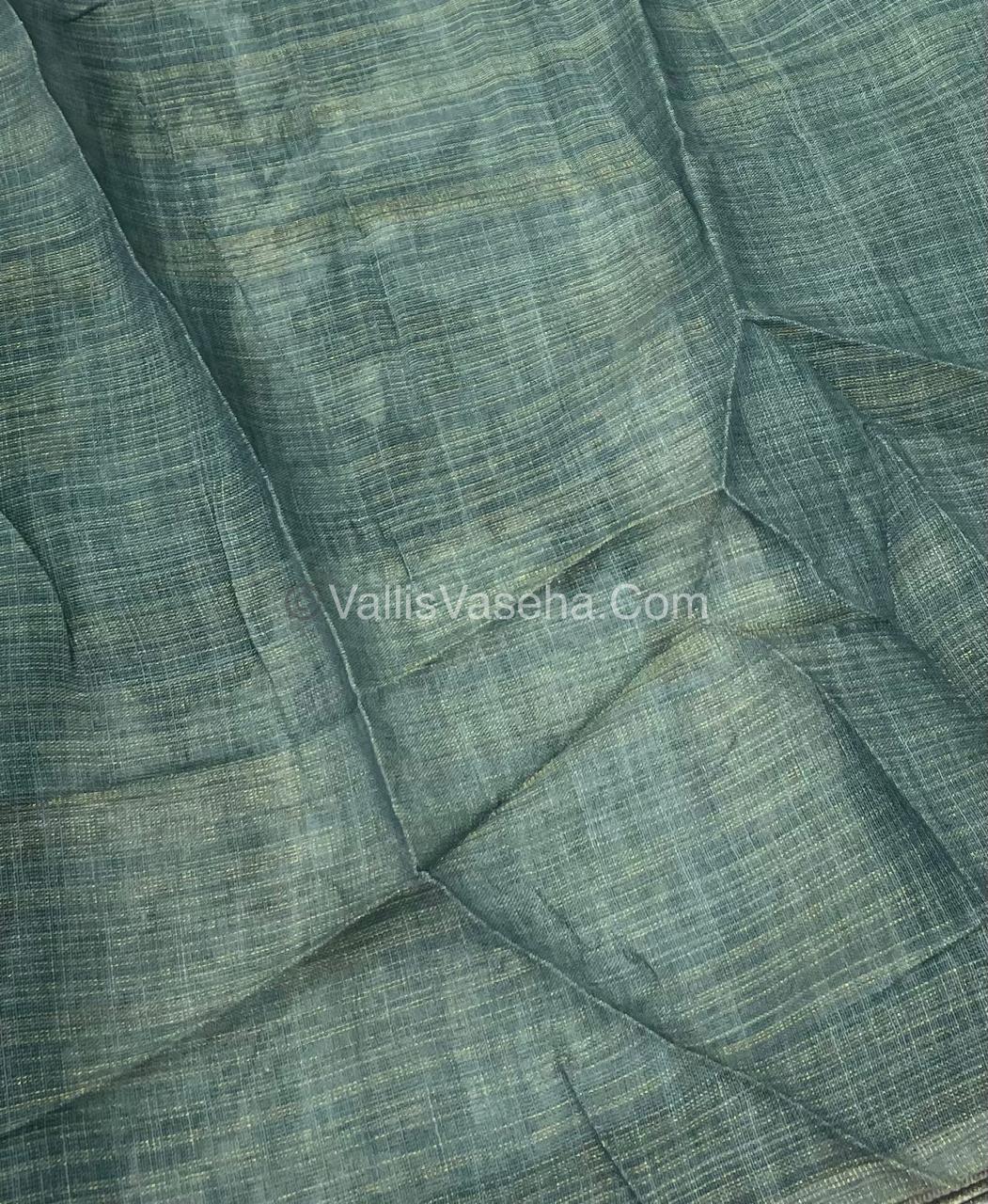 Tissue Linen Saree - Cloud Design - Green Shade - VVTLS002