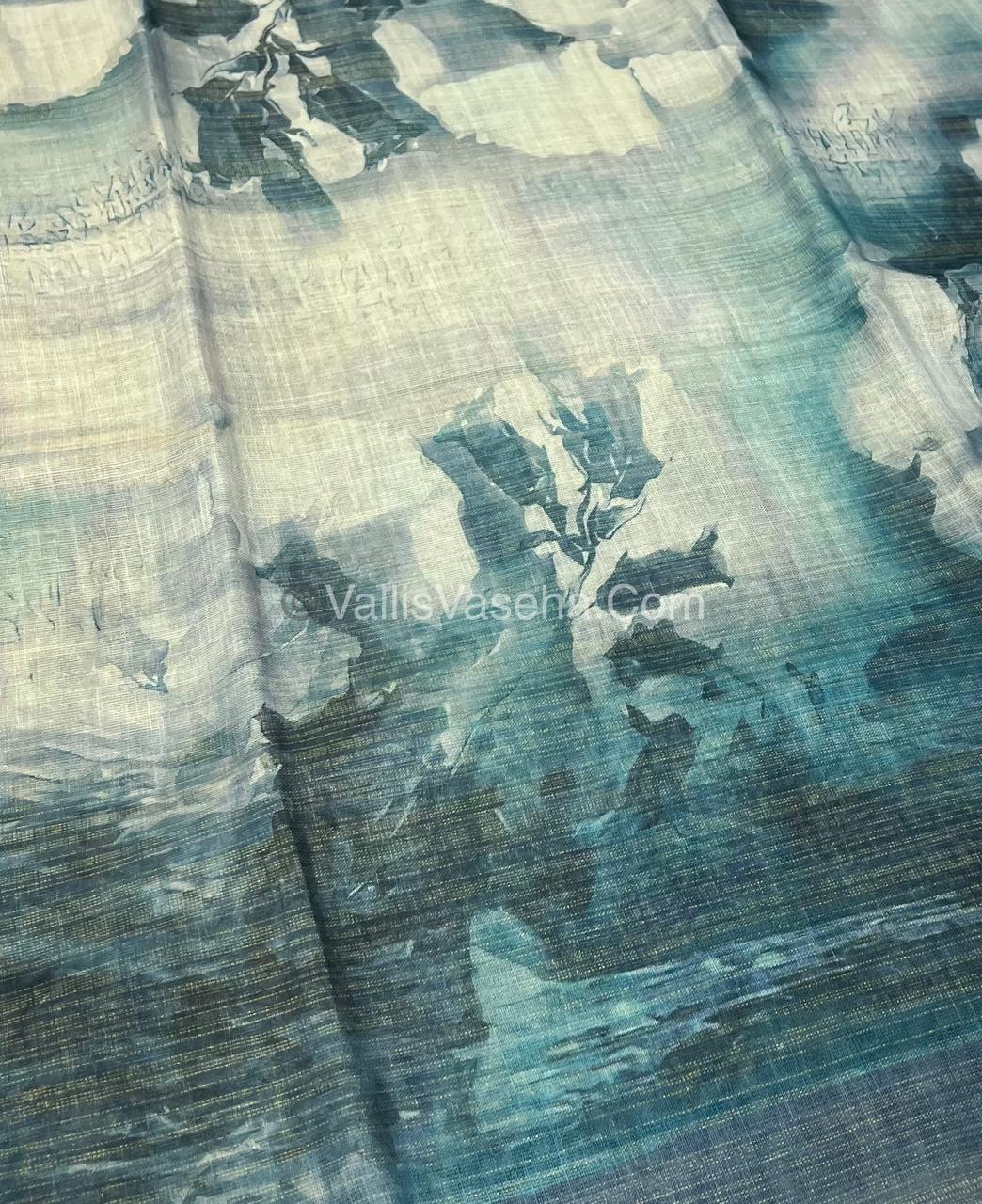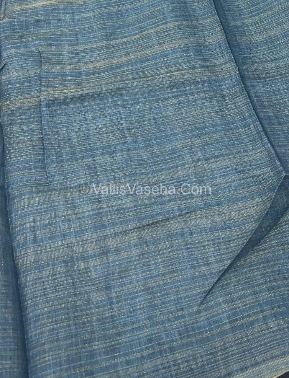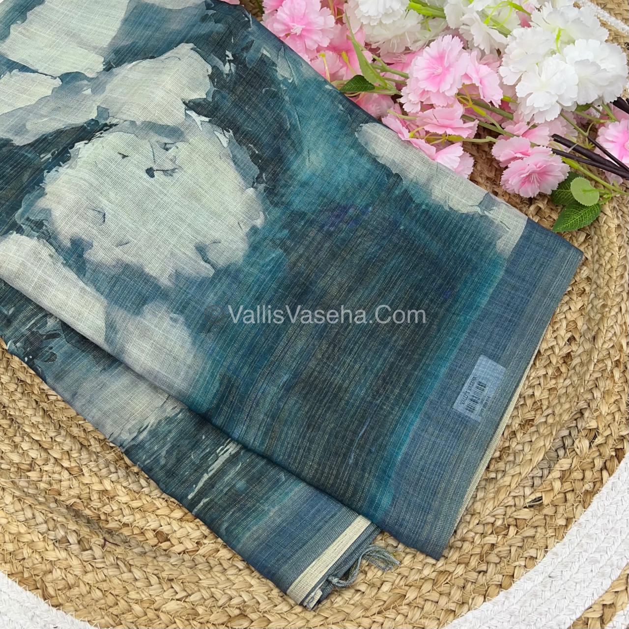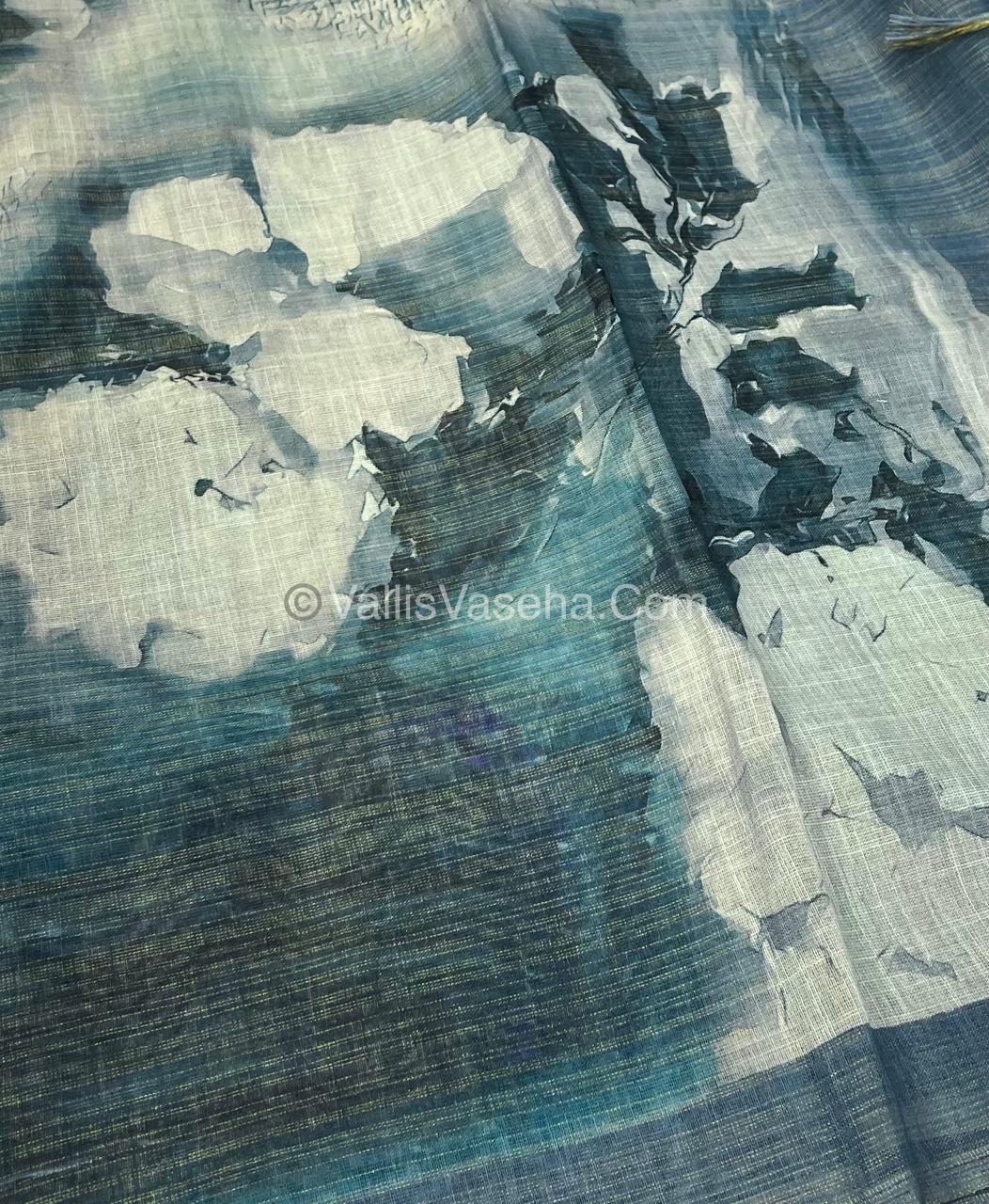 Tissue Linen Saree - Cloud Design - Ramar Blue Shade - VVTLS002