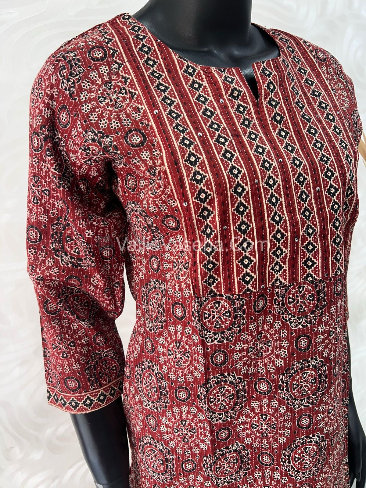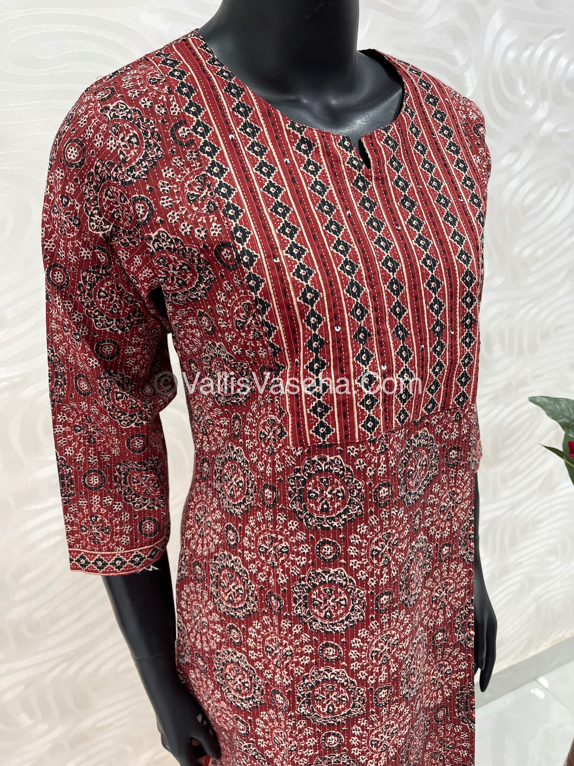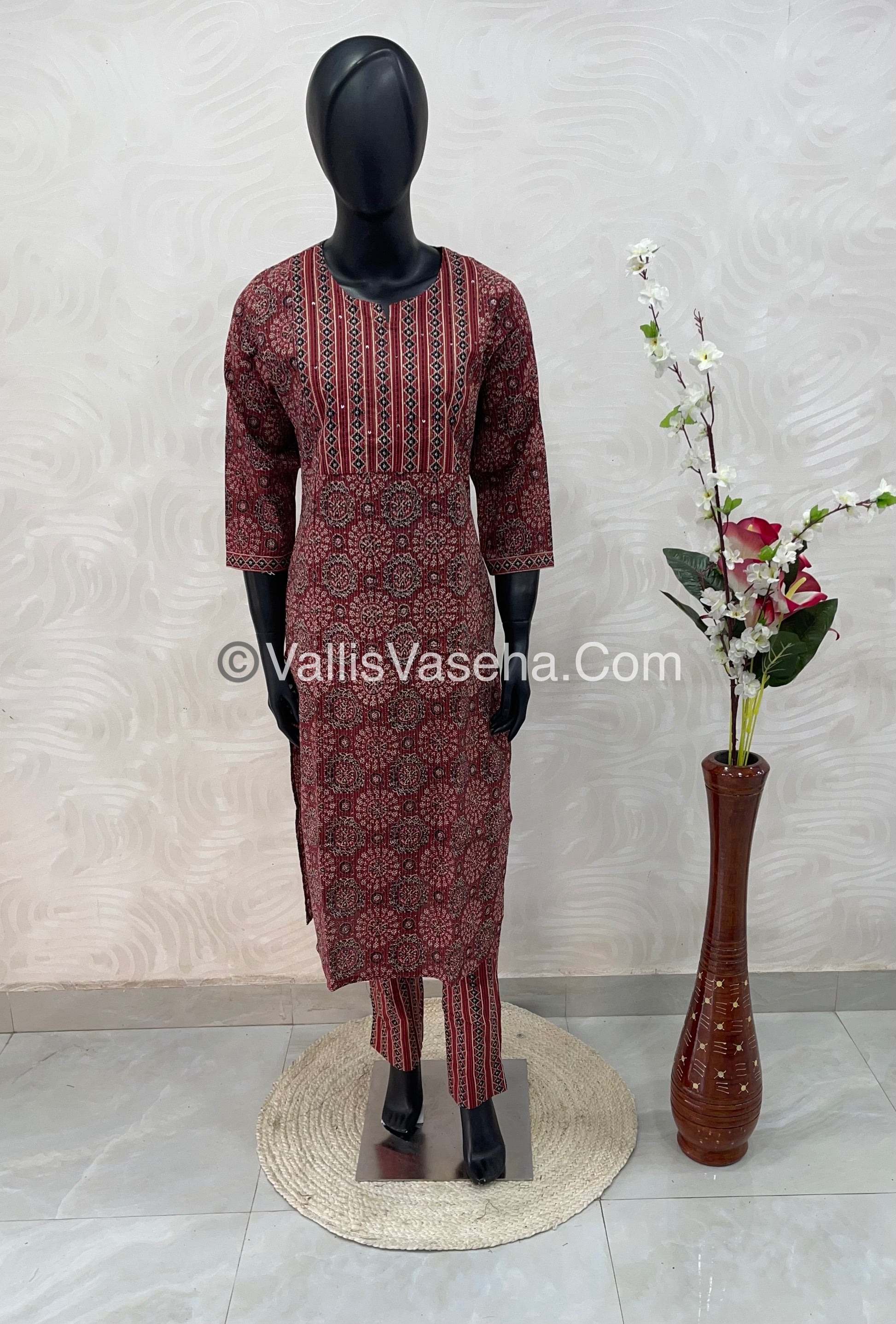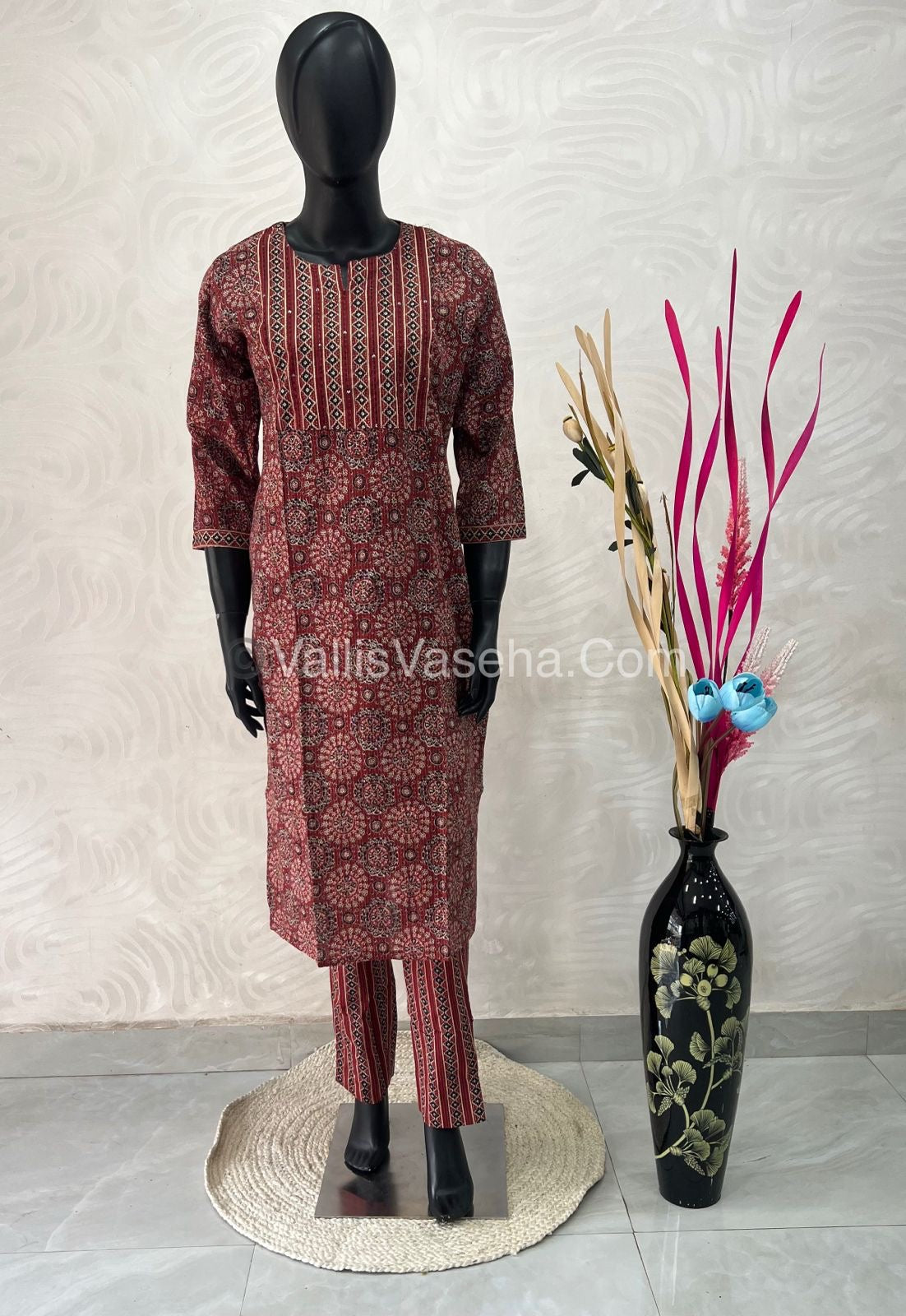 Trendy Printed Cotton - Co-ord Set - Maroon Shade - VVRCS001