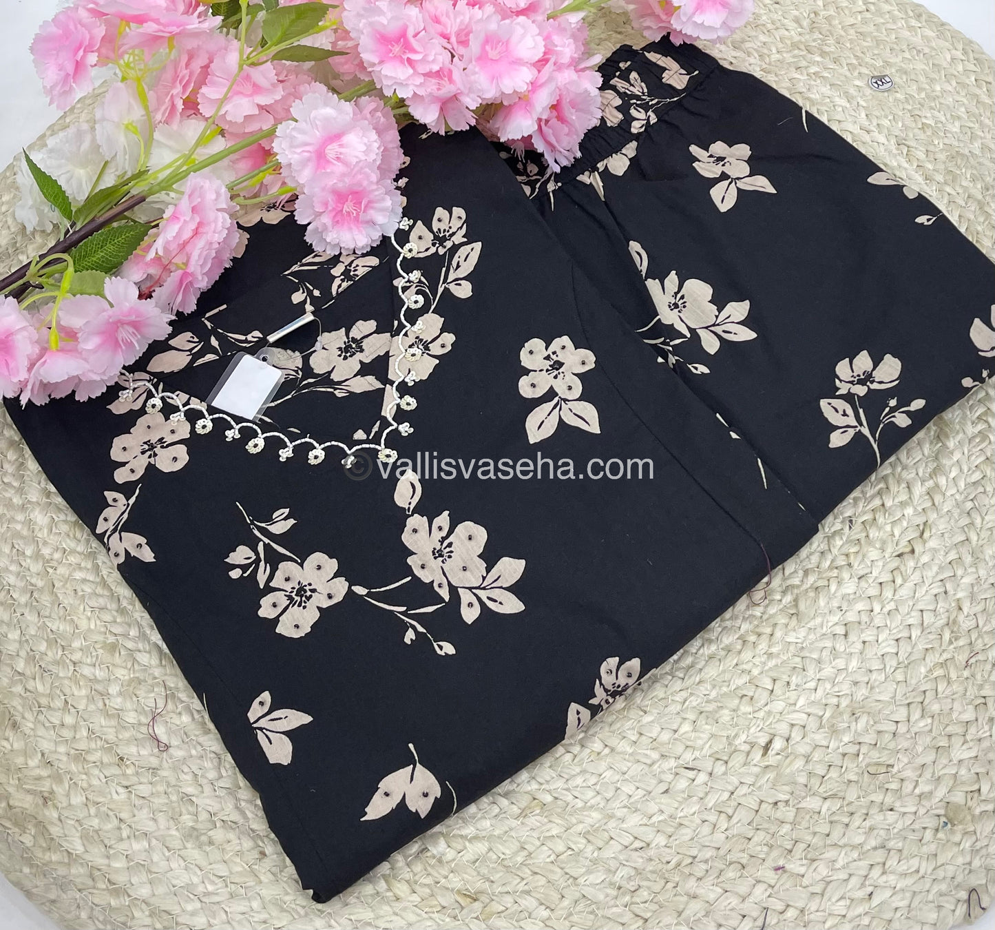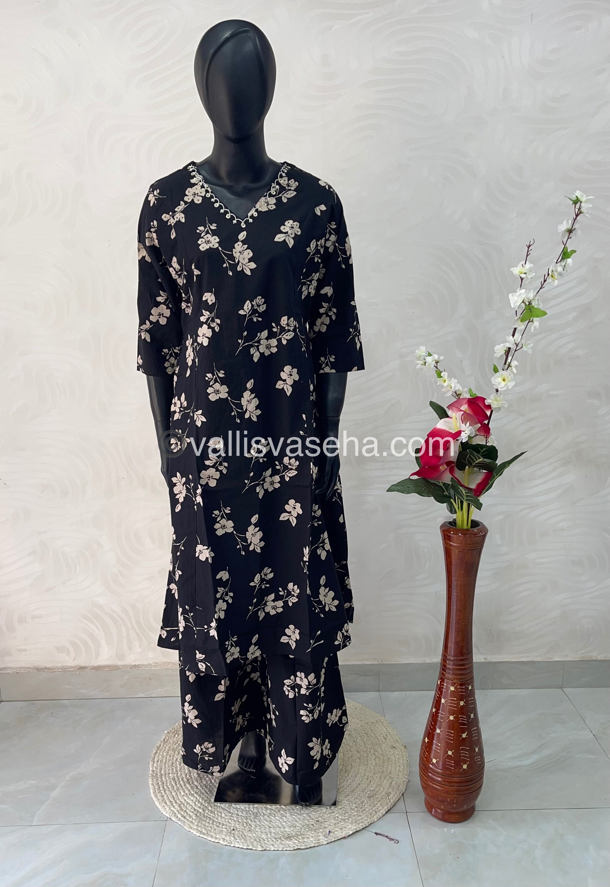 Premium Co-ord Sets- Cotton with V neck beads embroidery and all over embroidery with beautiful floral prints . Regular Wear / Office Wear